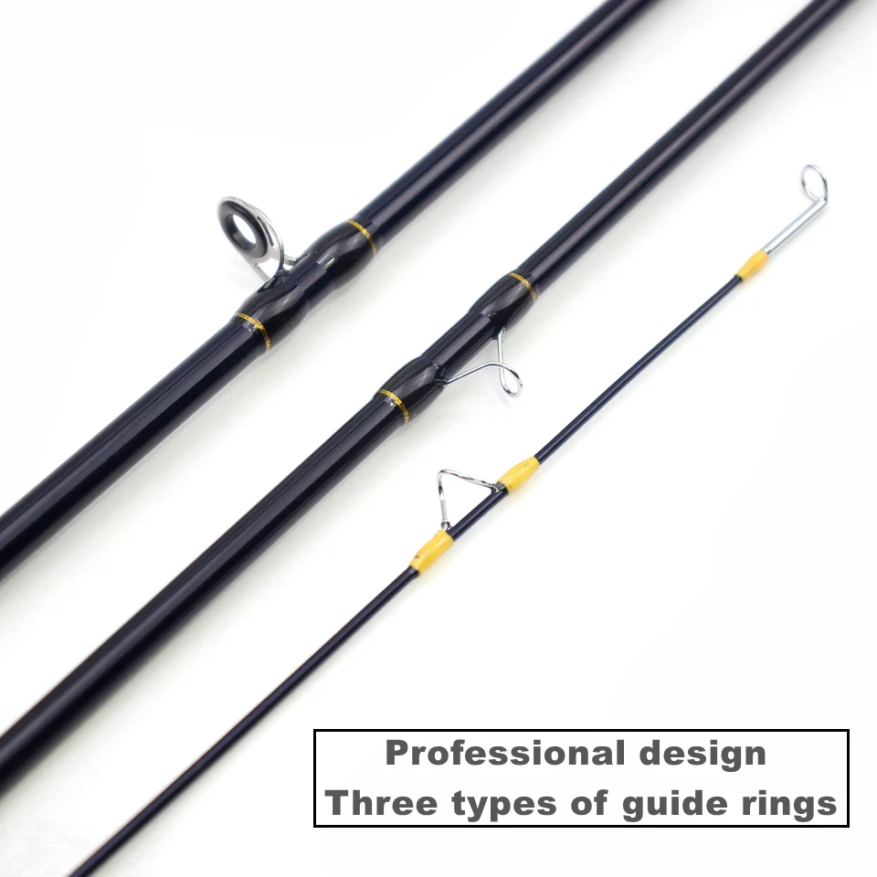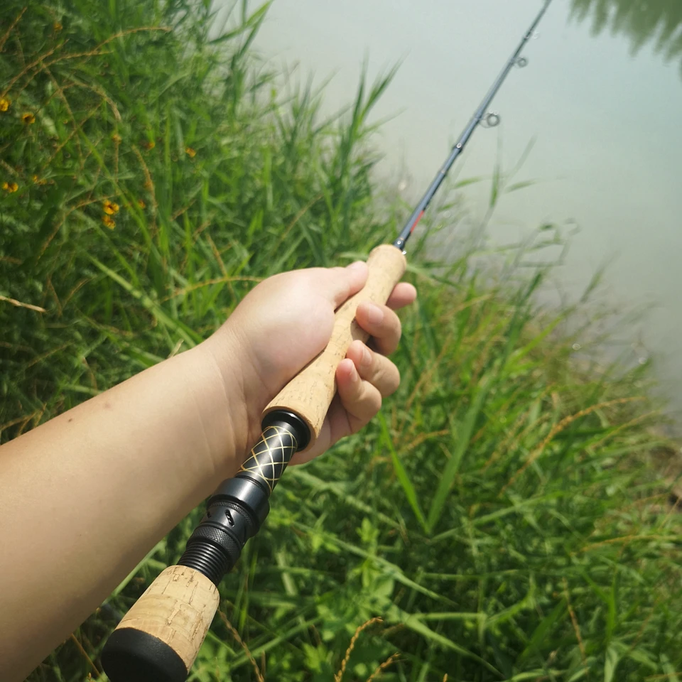 2. Las cañas de pescar con mosca de dureza media son de 1,98 metros (6,6 pies), 2,1 metros (7 pies), 2,4 metros (8 pies), 2,7 metros (9 pies) y de longitud. Las varillas son ligeras y no se sentirán cansadas después de balancearse durante mucho tiempo. El diseño medio-duro se puede utilizar para atrapar peces pequeños o grandes. Se puede utilizar perca, bagre, pez mandarín, Lucio, lucio del norte, etc.