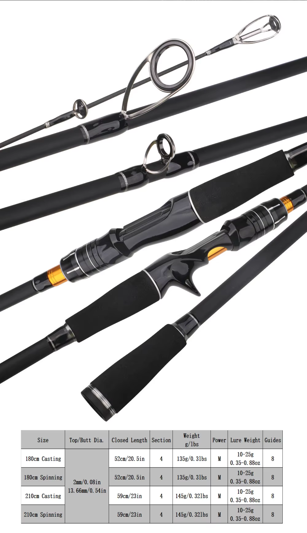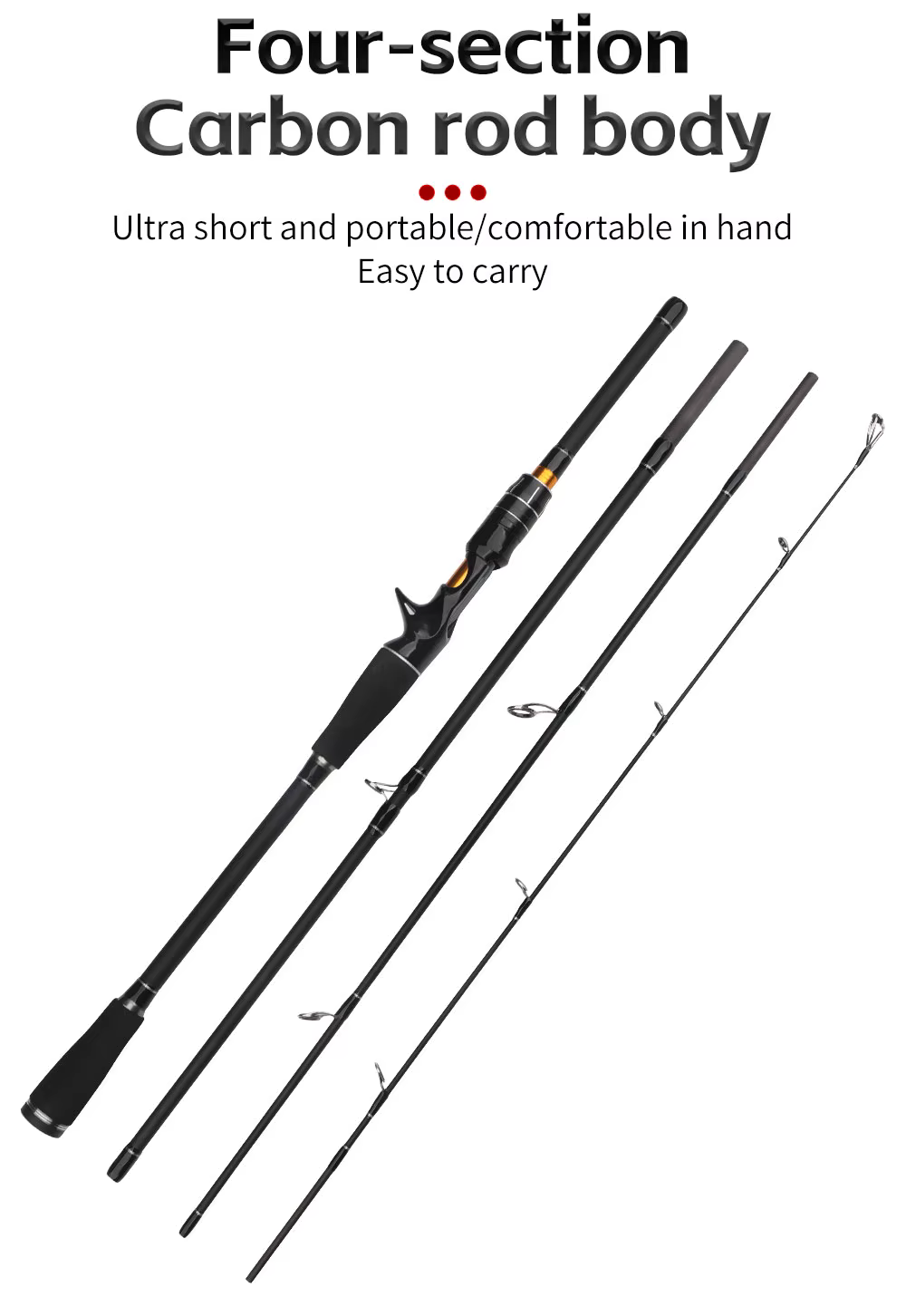 Caña de pescar portátil de carbono de 4 secciones, caña de pescar de fundición/Spinning, peso del señuelo de 10-25g, 180cm/210cm (70,87 in)