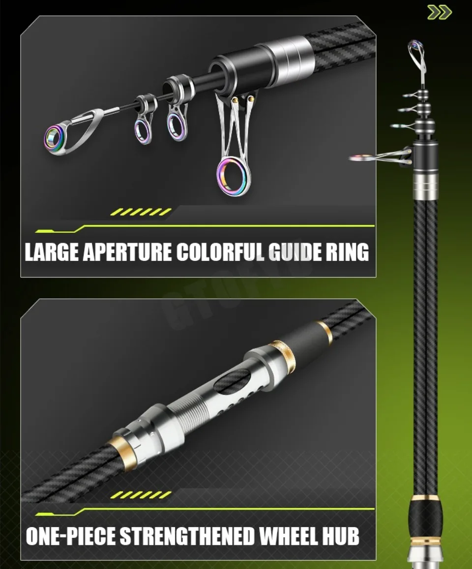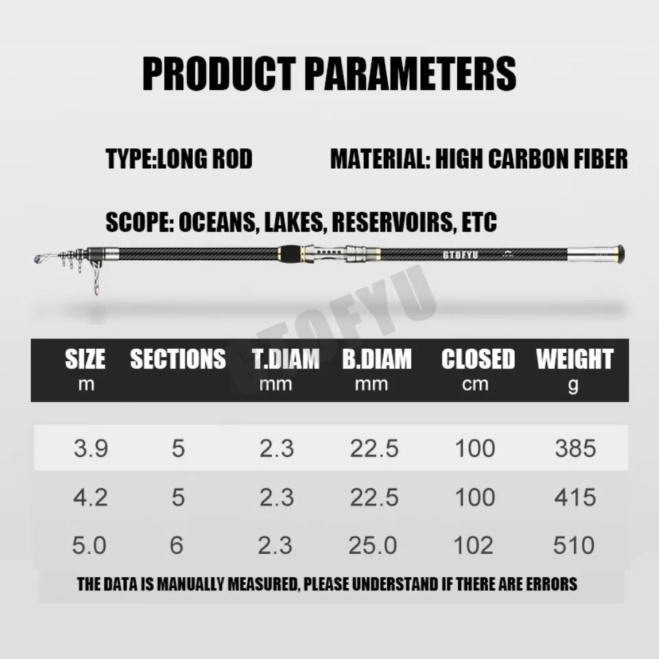 Caña de pescar portátil de carbono giratoria Sufr telescópica de 3,9 M 4,2 M 4,5 M para barco, agua salada, agua dulce, surfcasting, caña de Baitcasting