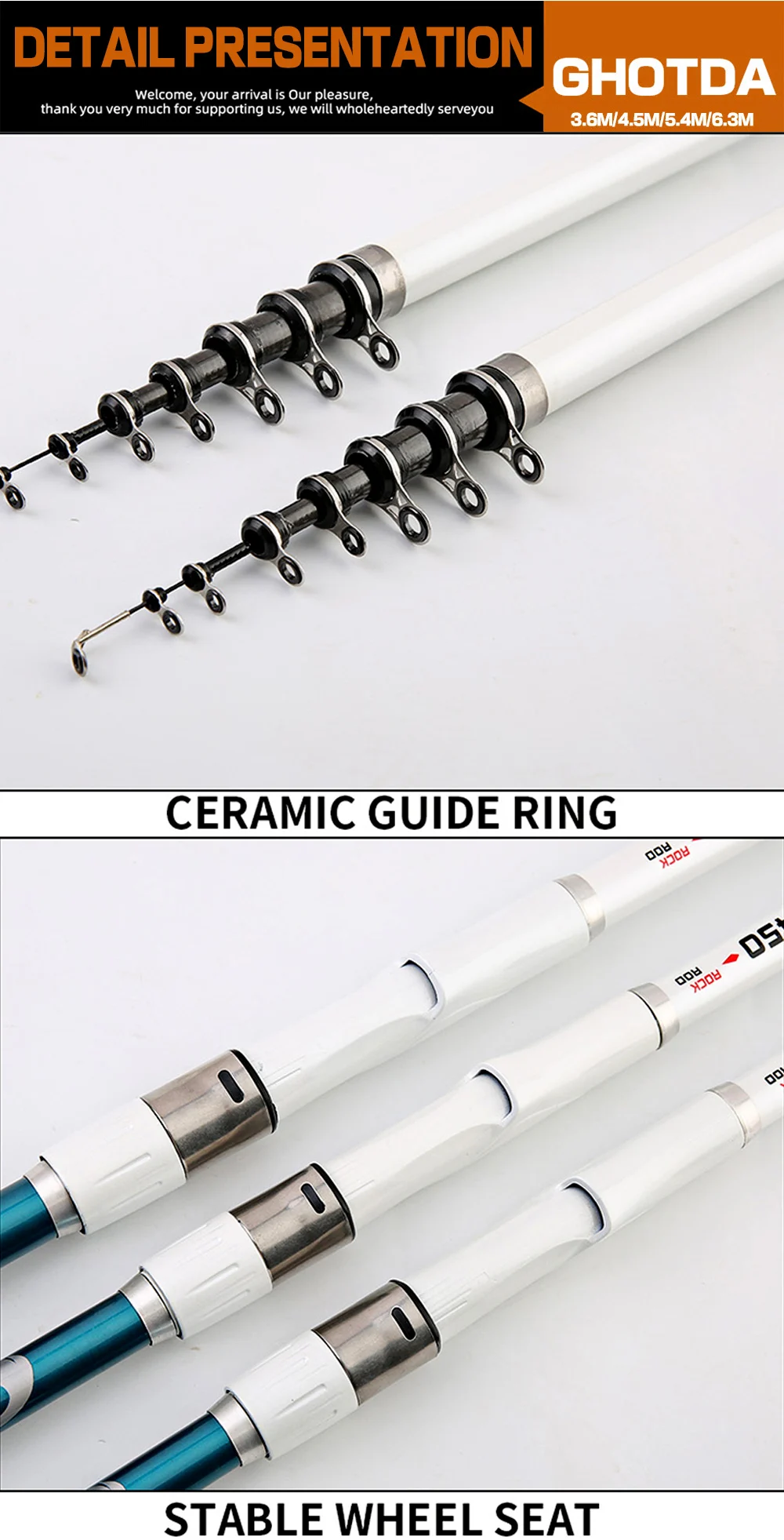Caña de pescar de roca portátil 3,6 M 4,5 M 5,4 M 6,3 m caña de carpa caña de pescar de mar telescópica fibra de carbono caña alimentadora de Surf caña giratoria