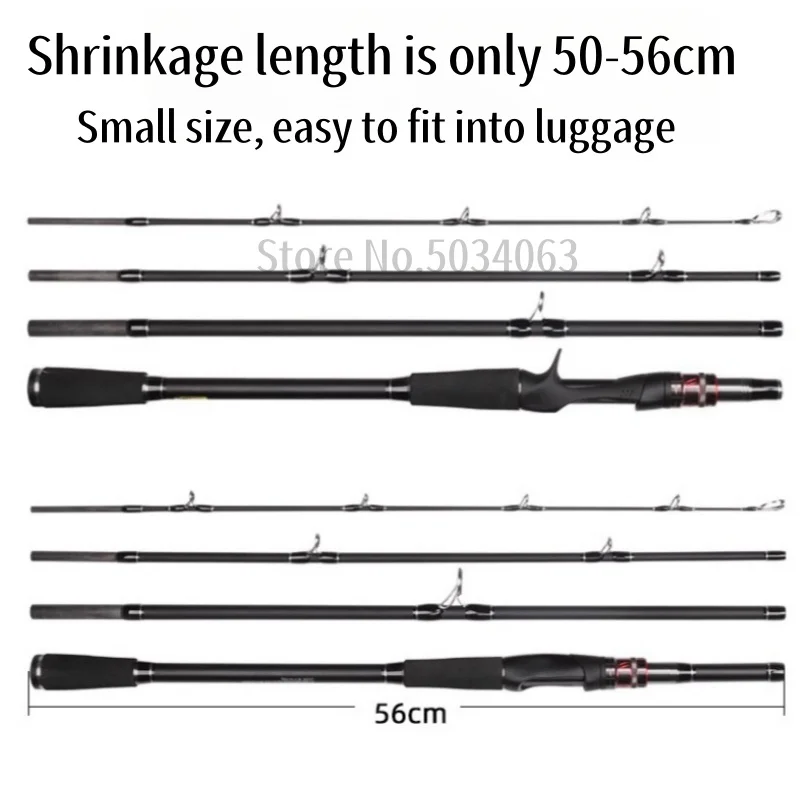 Caña de pescar portátil de fundición giratoria de fibra de carbono de 1,8 m y 2,1 m, potencia H, 10-40g, señuelo de acción rápida, duro, 4 secciones, aparejos