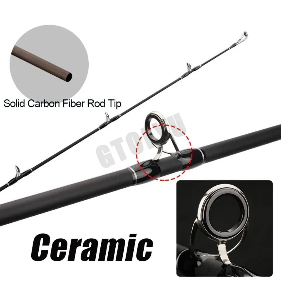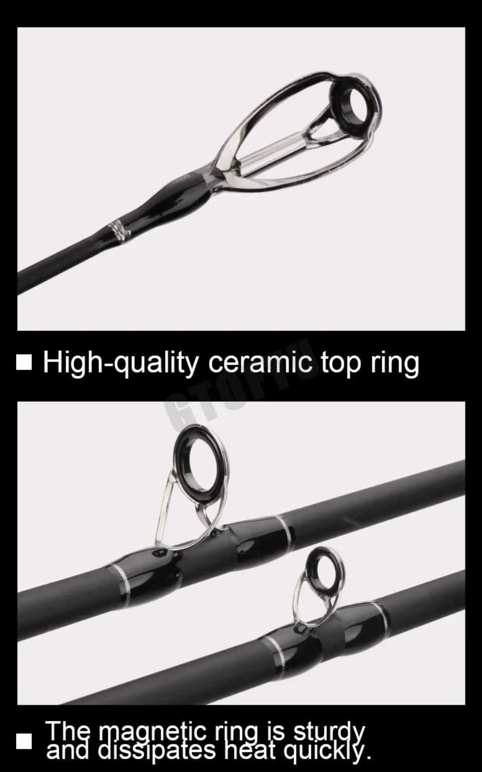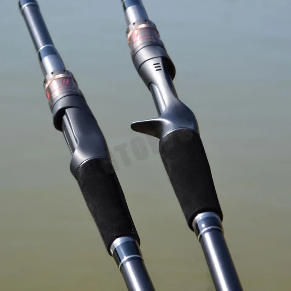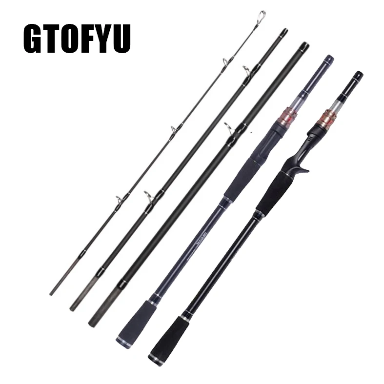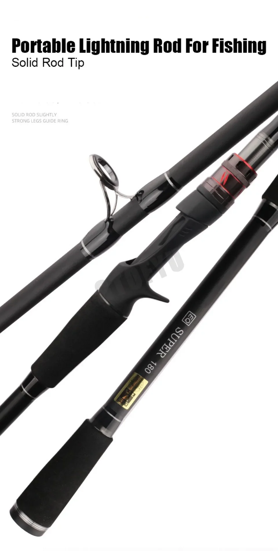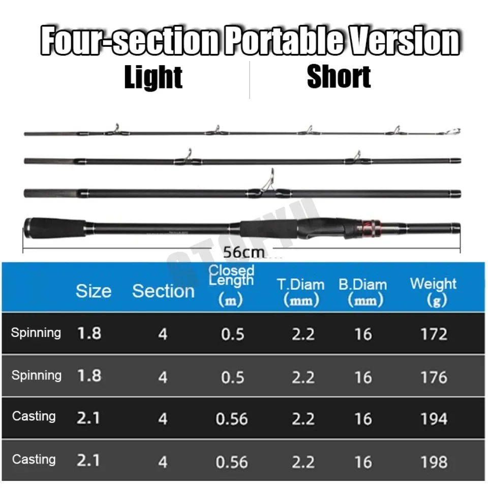 Caña de pescar portátil de fundición giratoria de fibra de carbono de 1,8 m y 2,1 m potencia H 10-40g señuelo de acción rápida duro 4 secciones aparejos de caña de señuelo