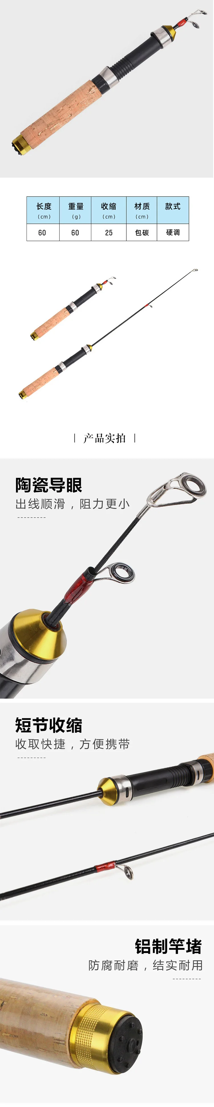 Caña de pescar portátil de hielo para invierno, cañas de pescar giratorias de fundición, 3 secciones, 60cm