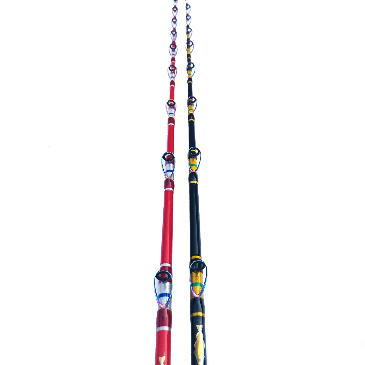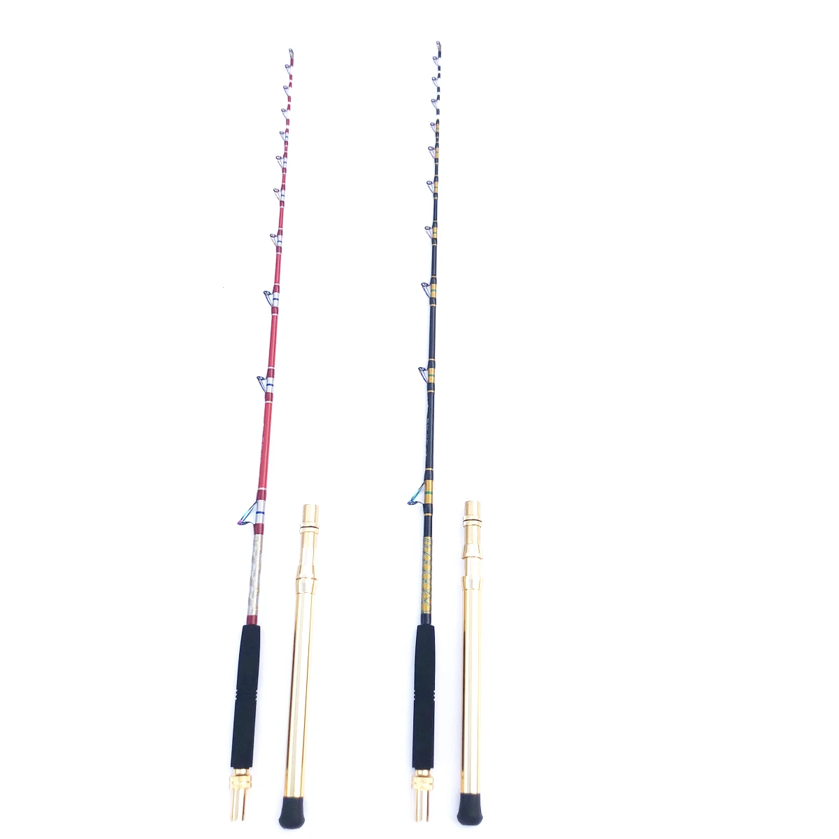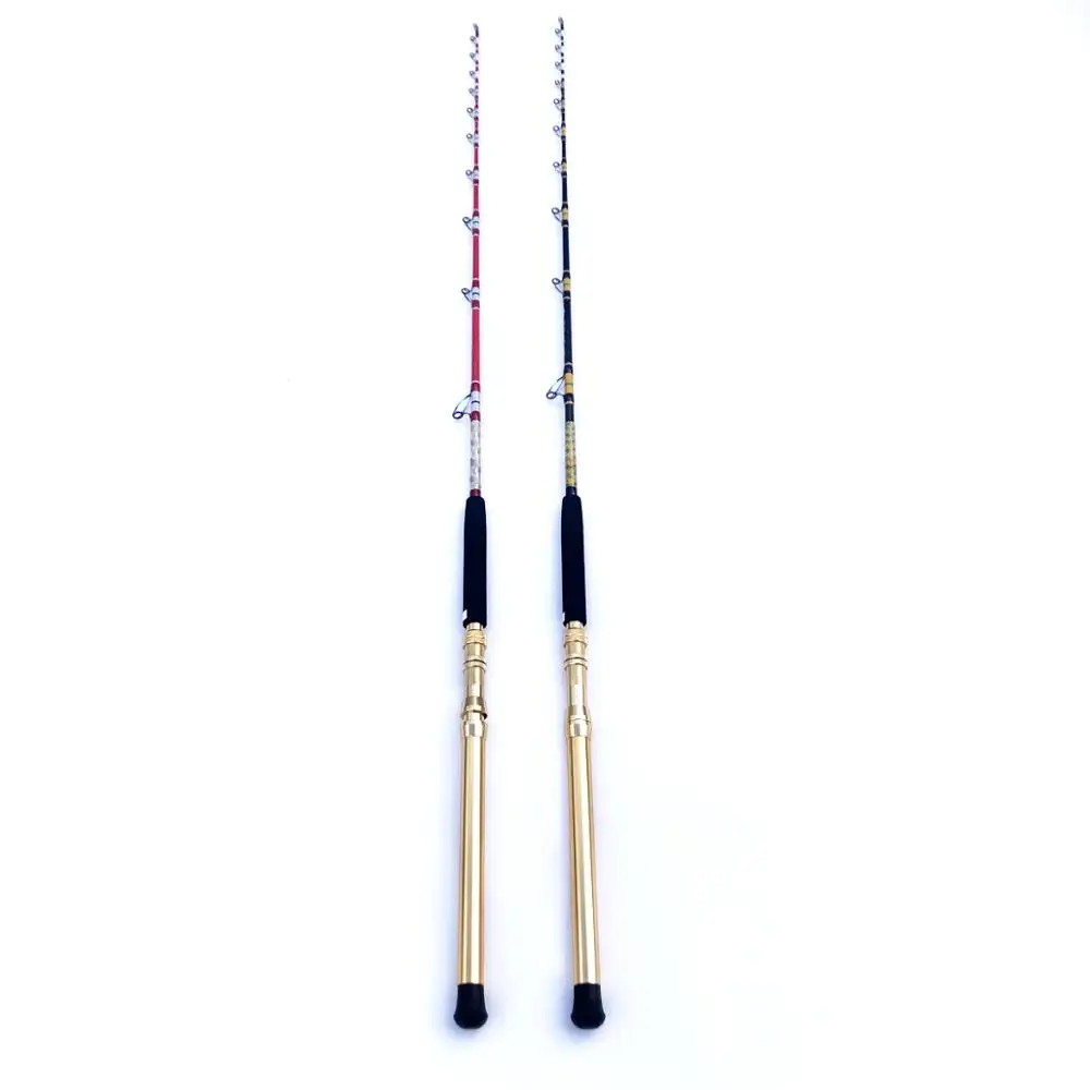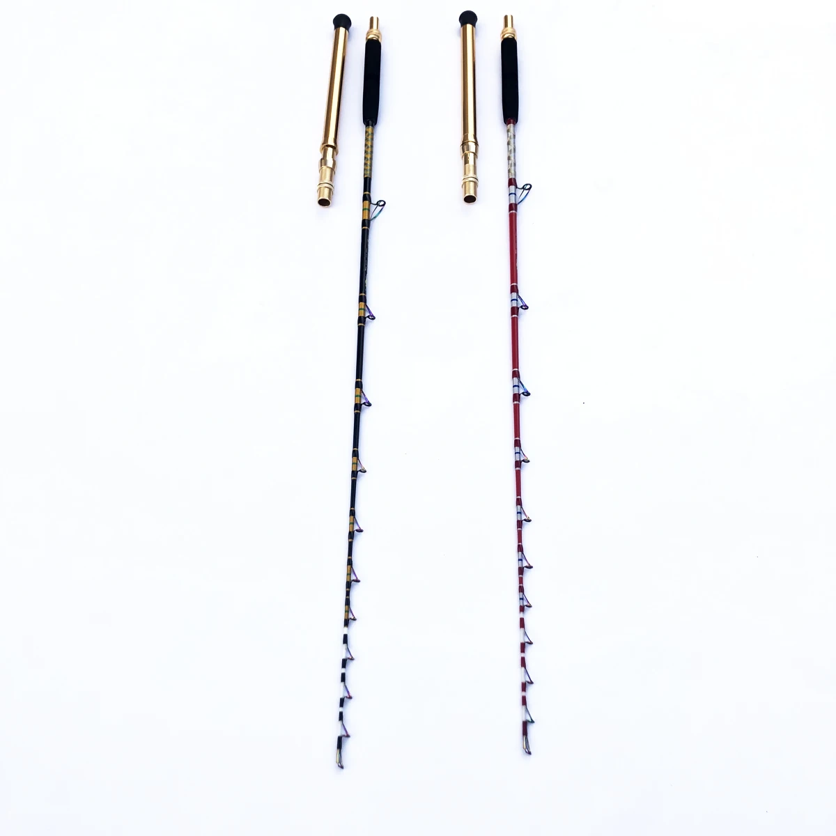 40-80LB, caña de pescar para pesca en barco de aguas profundas de alta resistencia, el material principal está hecho de material de carbono y la parte superior adopta nueva tecnología (combinación de plástico reforzado con fibra de vidrio y carbono), que es más resistente, la sección del mango está hecho de todo metal, que es más fuerte y resistente al desgaste.