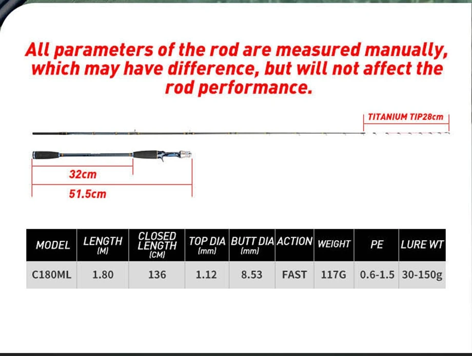 Caña de pescar de barco de 1,8 m con punta de titanio, caña de pescar de fundición para sepia, pulpo, caña de pescar de agua de mar con anillos Fuji, acción ML