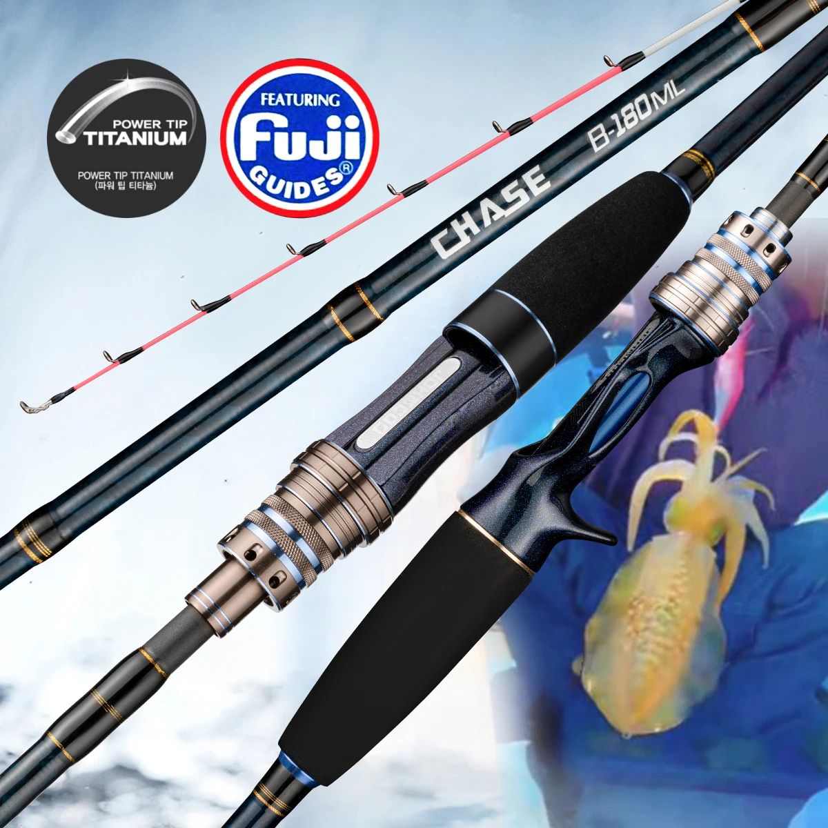 Caña de pescar de barco de 1,8 m con punta de titanio, caña de pescar de fundición para sepia, pulpo, caña de pescar de agua de mar con anillos Fuji, acción ML