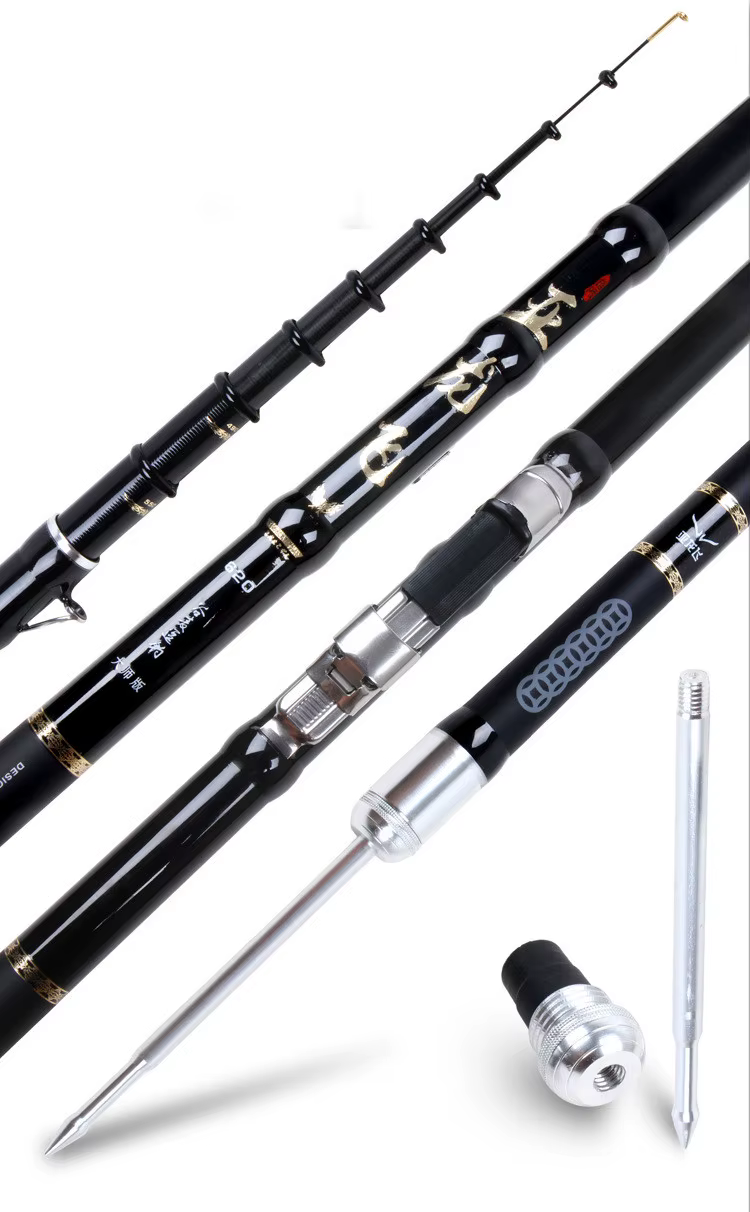 Caña de pescar de carbono retráctil 4,9 M-9M, posicionamiento ultraligero y duro, 19 cañas de pescar ajustables, caña de pescar giratoria portátil
