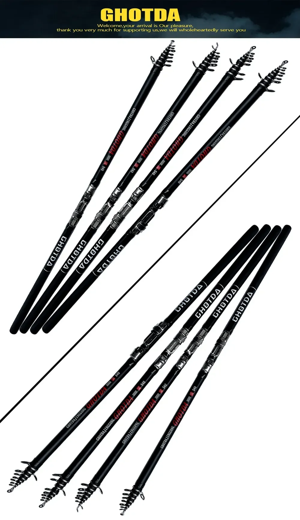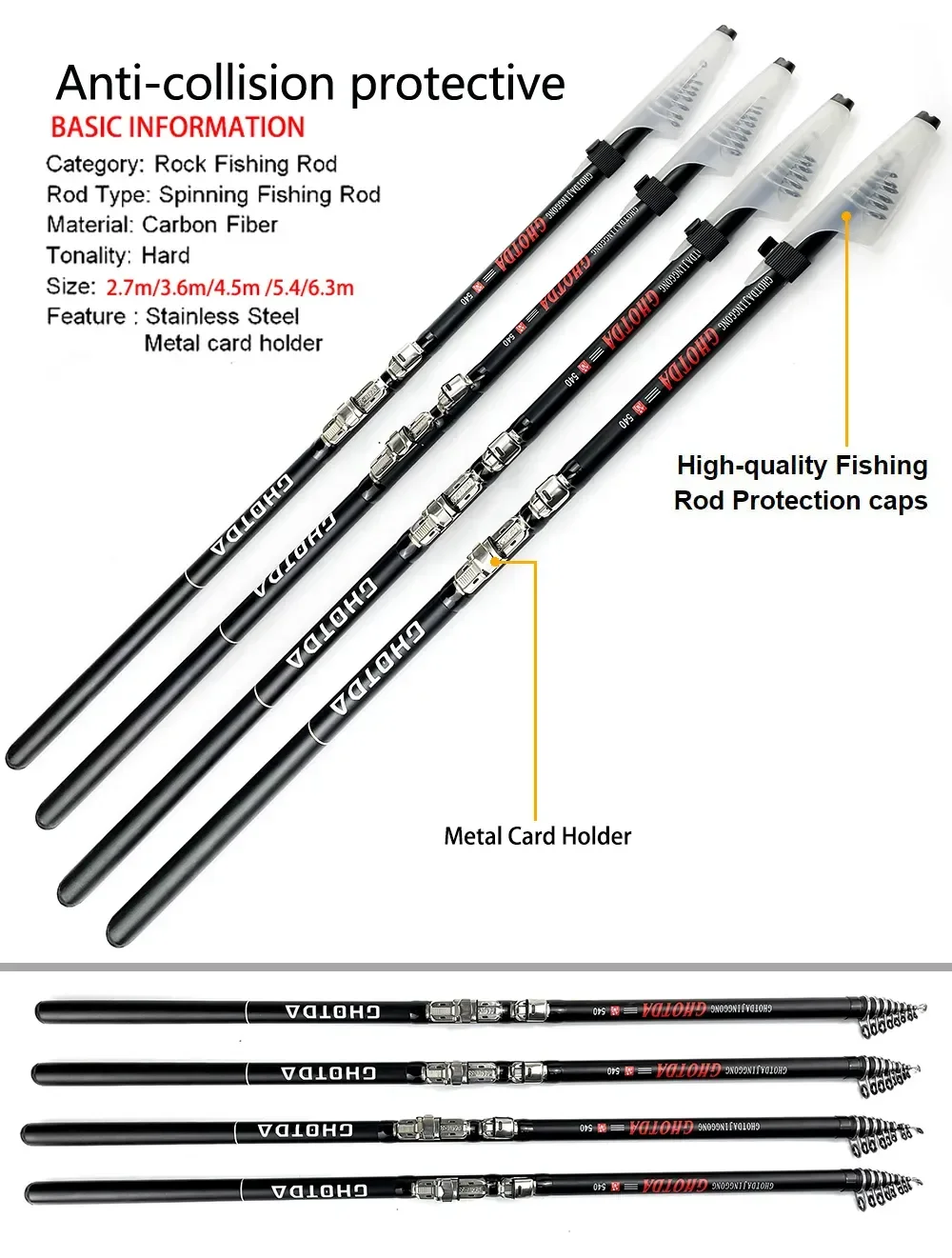 Caña de pescar en roca de fibra de carbono completa 2,7 M/3,6 M/4,5 M/5,4 M/6,3 M