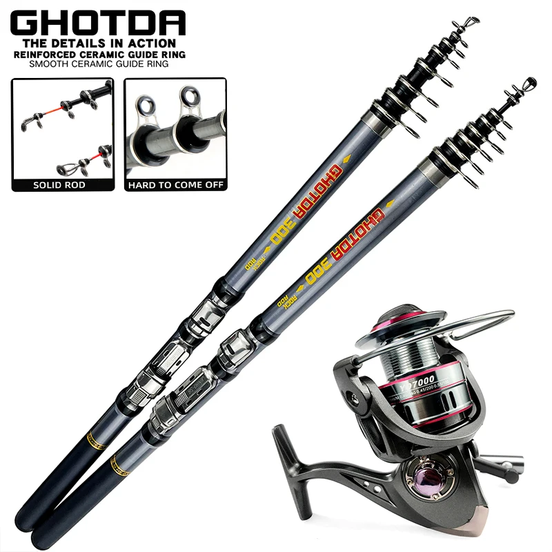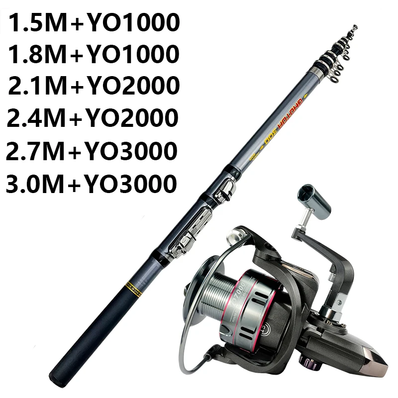 Caña de pescar de roca giratoria telescópica y carrete combinado, caña de Jigging corta, rueda de Baitcasting de 1,5 m-3,0m, arrastre máximo de 8kg para carpa lubina