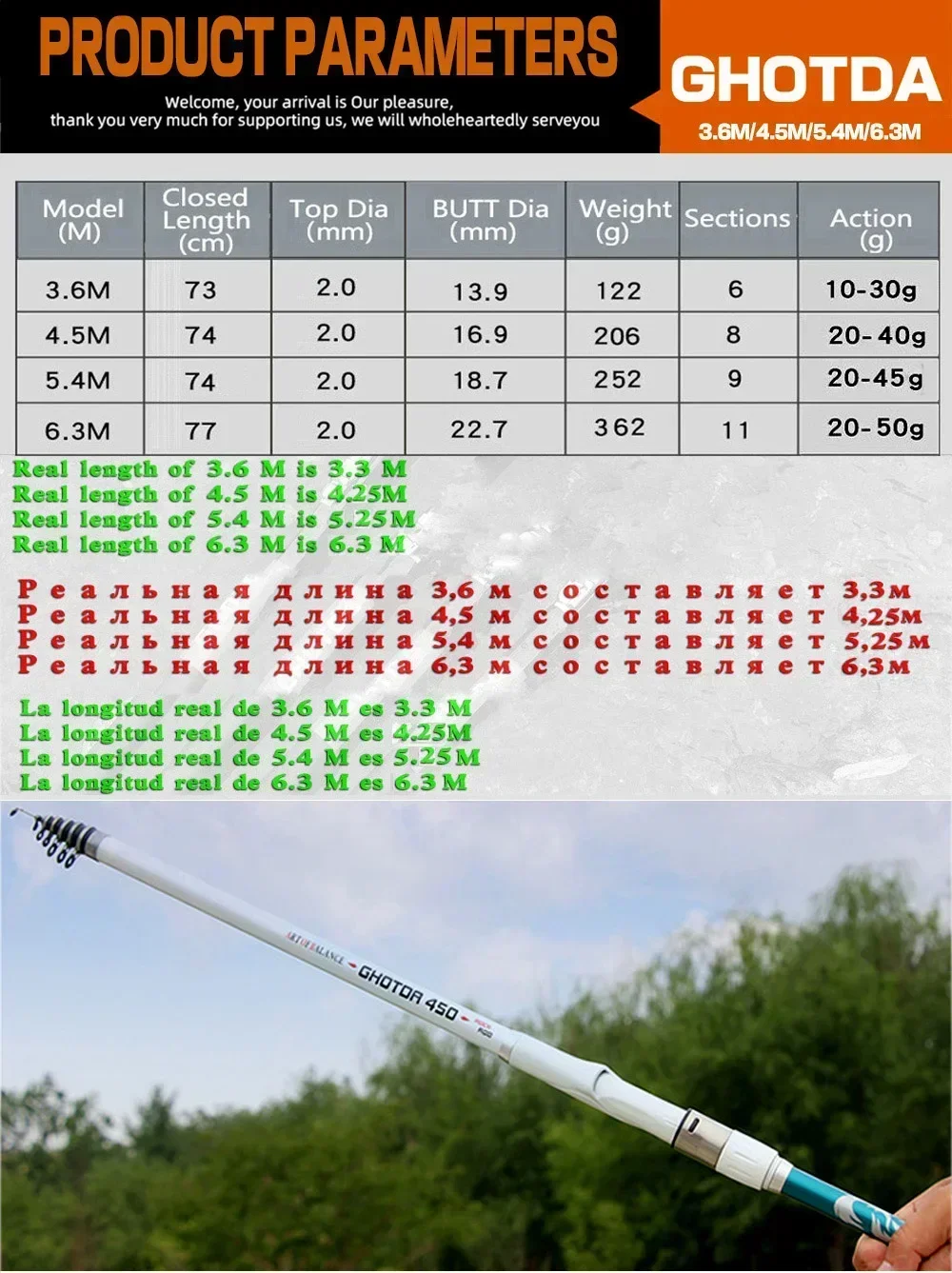 Caña de pescar telescópica GHOTDA