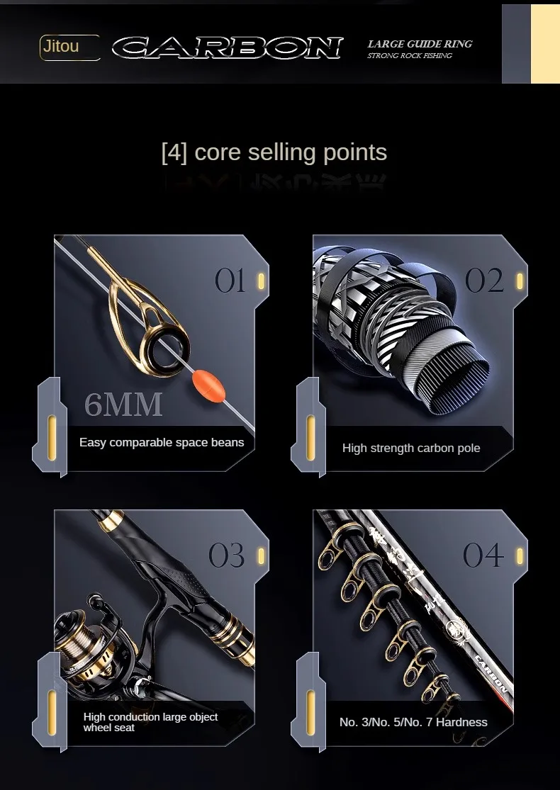 Caña de pescar en roca ultraligera súper dura, guía grande, caña de lanzamiento de distancia de alto carbono, caña de pescar telecópica de doble propósito para mar