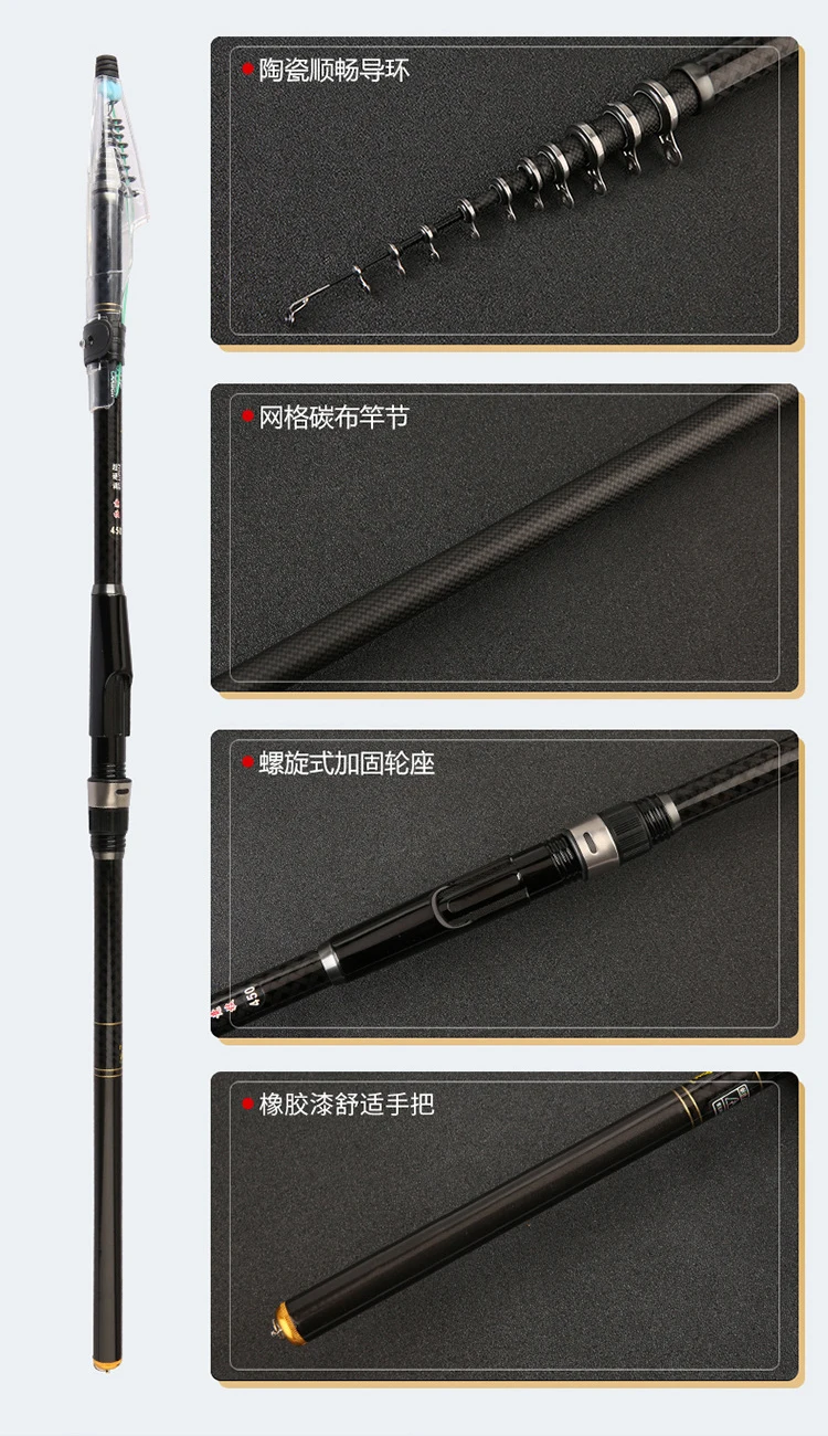 Caña de pescar rocosa con puntas sensibles al carbono, accesorio para agua salada, giratoria, flotador, 4,5 m, 5,4 m, 6,3 m, 7,2 m