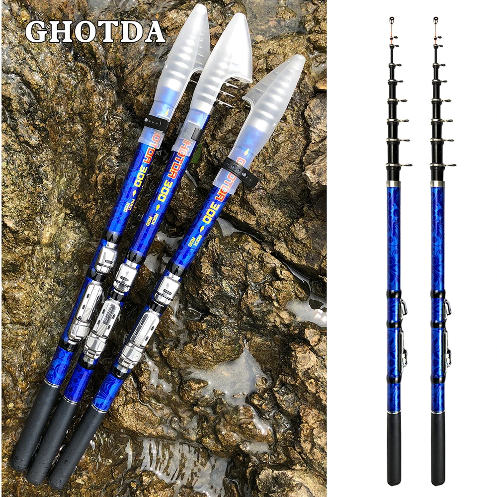Caña de pescar telescópica rocosa giratoria de carbono 3M 2,7 M 2,4 M 2,1 M 1,8 M 1,5 M Carpa/carpa cruciana azul resistente y duradera playa de estanque