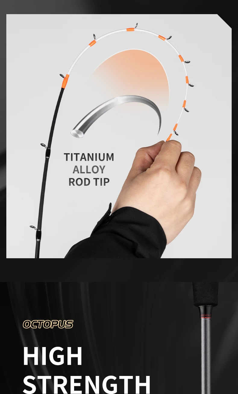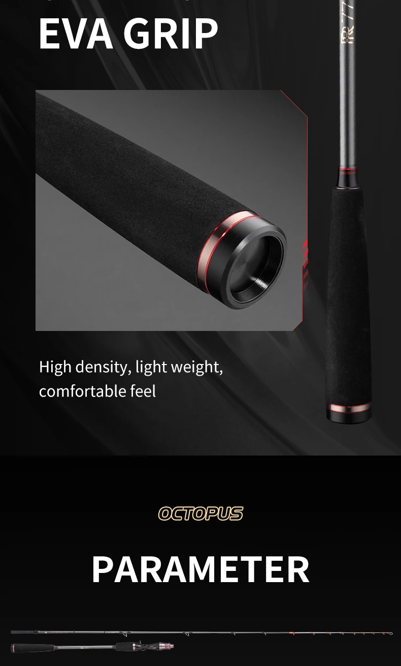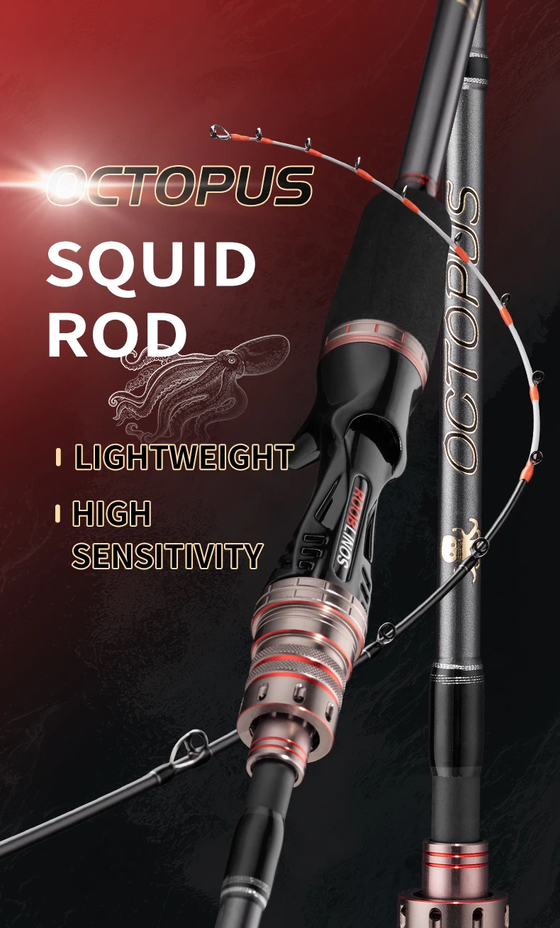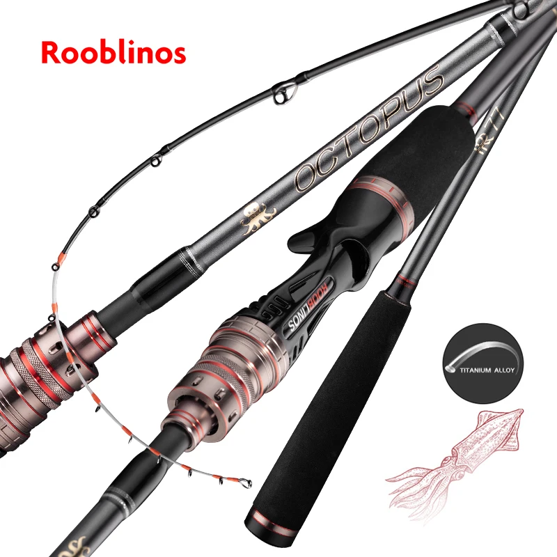 Caña de pescar Rooblinos OCTOPUS calamar, fibra de carbono T 33, punta de caña de aleación de titanio de 1,65 M, caña de fundición giratoria