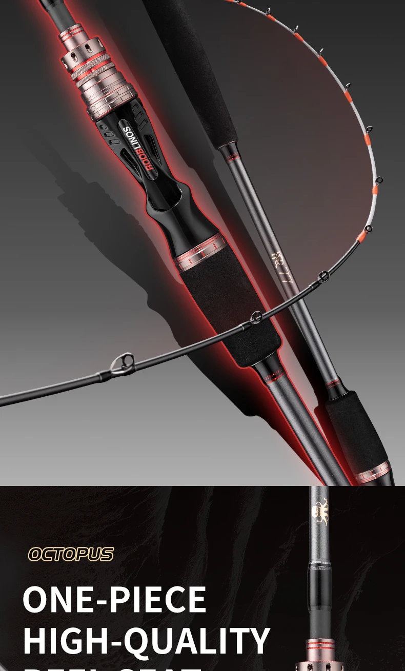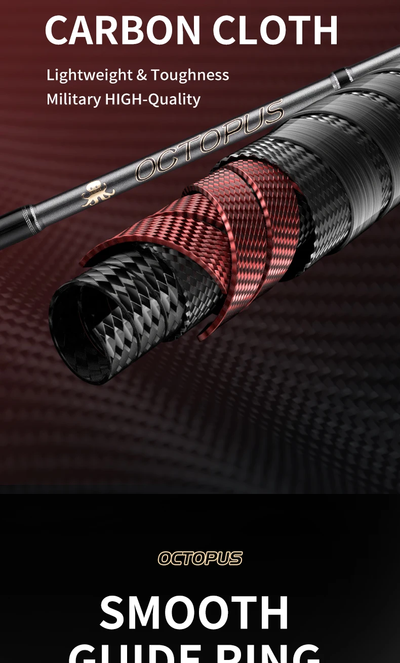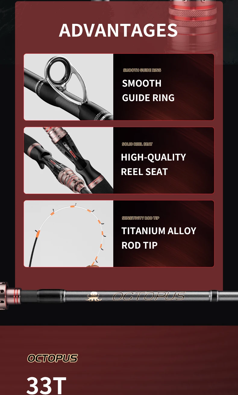 Caña de pescar Rooblinos OCTOPUS calamar, fibra de carbono T 33, punta de caña de aleación de titanio de 1,65 M, caña de fundición giratoria
