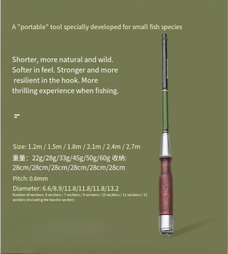 Caña de pescar con sección transversal ultracorta, caña de carbono ultraligera y ultra dura, caña de bolsillo 1,2 M1,5 M1.8 M2.1M2.4M2.7M