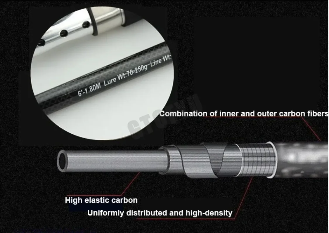 Señuelo: 70-250 g, Longitud: 1,8 M-2,1 M, Prueba: 20 kg arriba