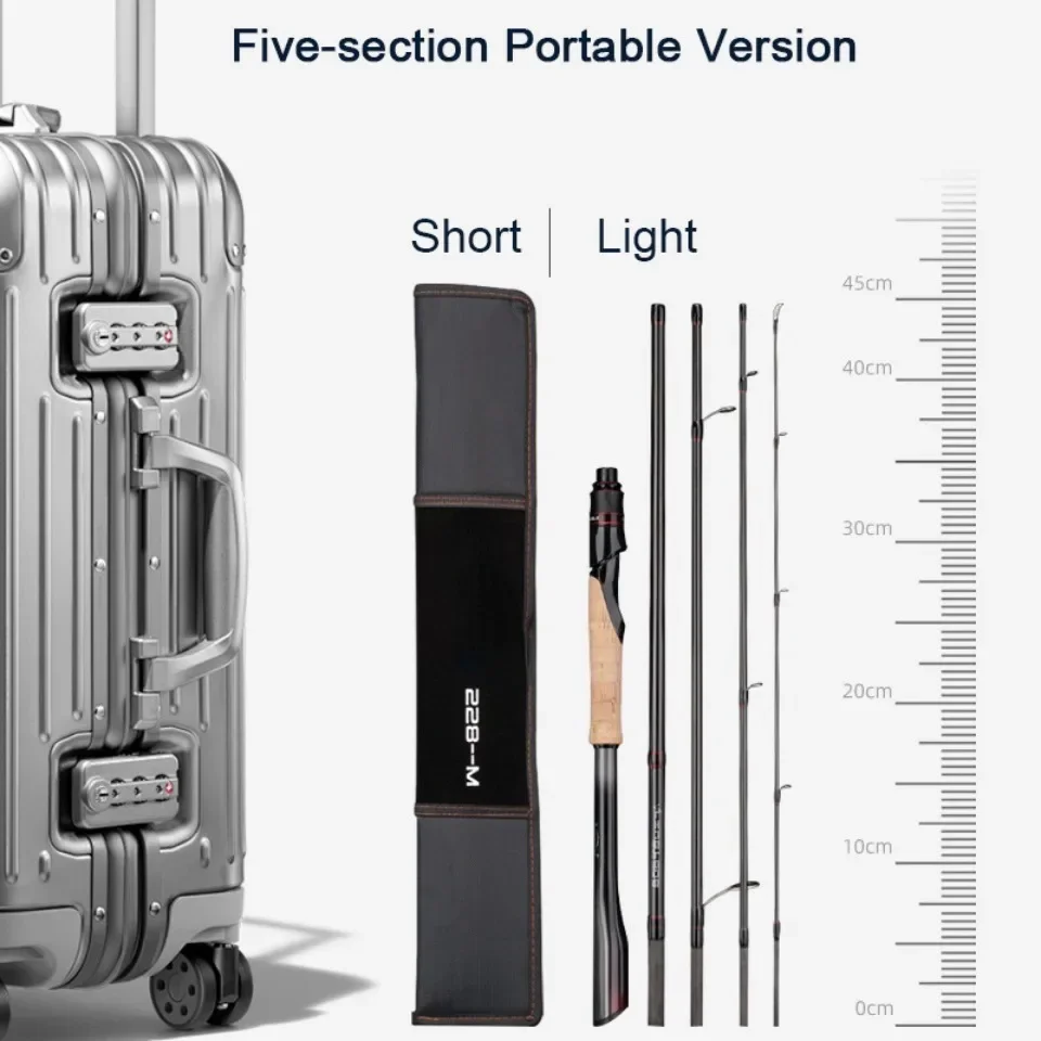 Caña de pescar con señuelo de 1,98 m y 2,28 m, anillo Fuji 40T de altura, caña de pescar giratoria de fibra de carbono, peso de cebo 5-28g, caña de pescar de viaje