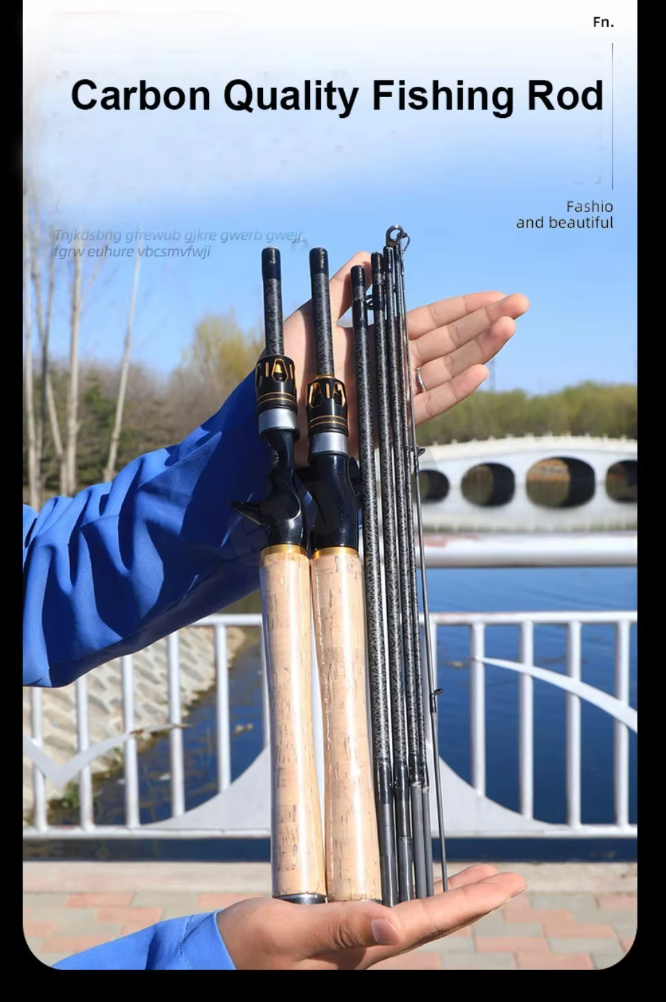 3. Esta caña de pescar está hecha de fibra de alto carbono, 90% mayor calidad que el mercado, fuerte y duradera.