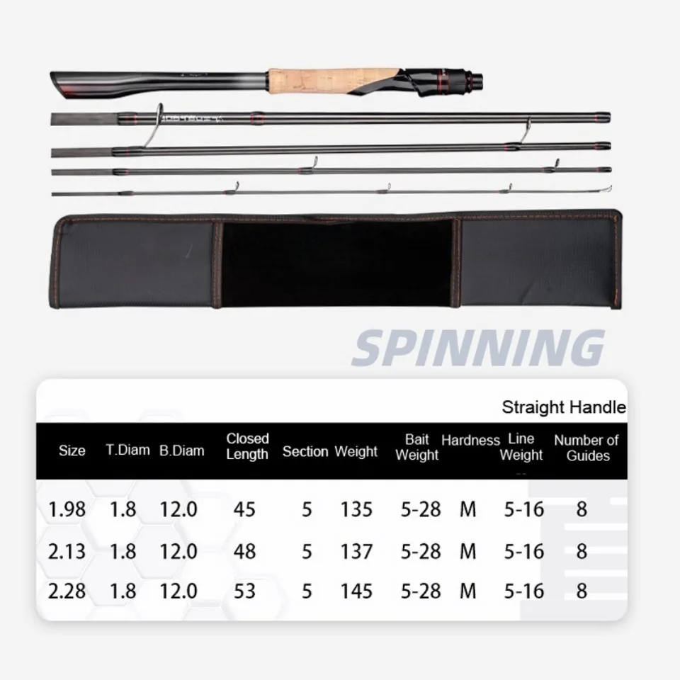 Caña de pescar con señuelo, accesorio con anillo Fuji 40T de fibra de carbono, Spinning Casting, peso del cebo 5-28g, 1,98 m, 2,28 m