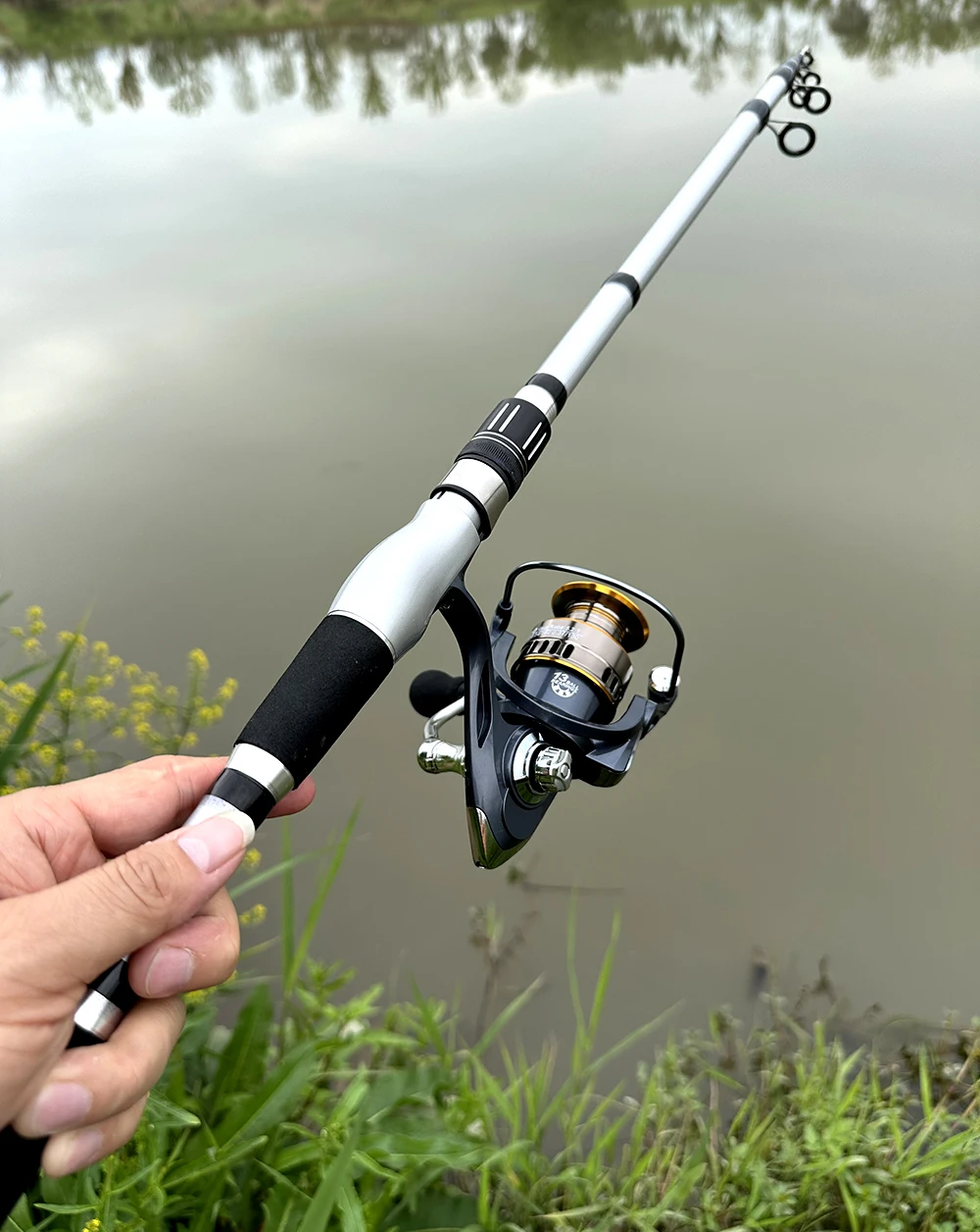2. Caña de pescar telescópica súper corta, fácil de llevar.