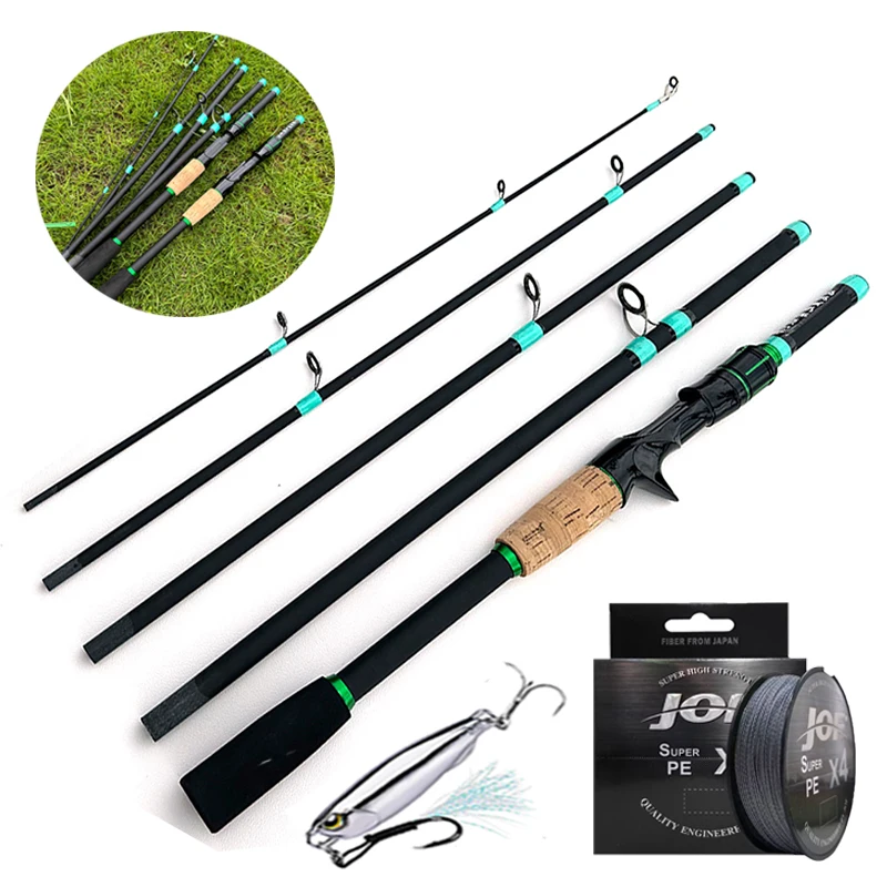Caña de pescar de señuelo corto ultraligera, 1,8/2,1 m, alto contenido de carbono, 4/5 secciones, caña de Baitcasting de pulpo de calamar con línea trenzada, Combo de Pesca