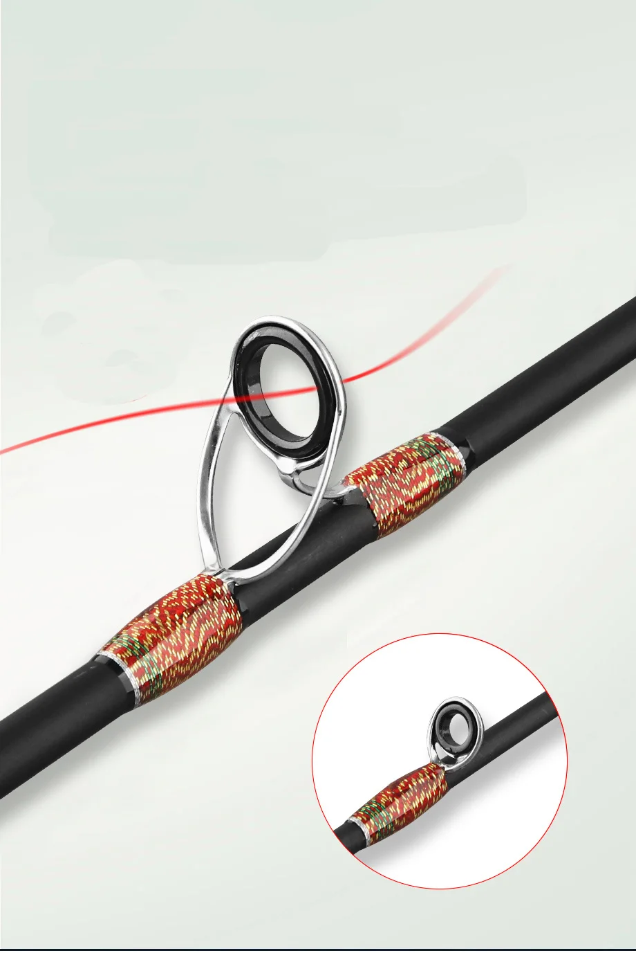 Equipado con anillos guía y un agarre para caña giratoria, proporciona una experiencia de pesca cómoda y eficiente.