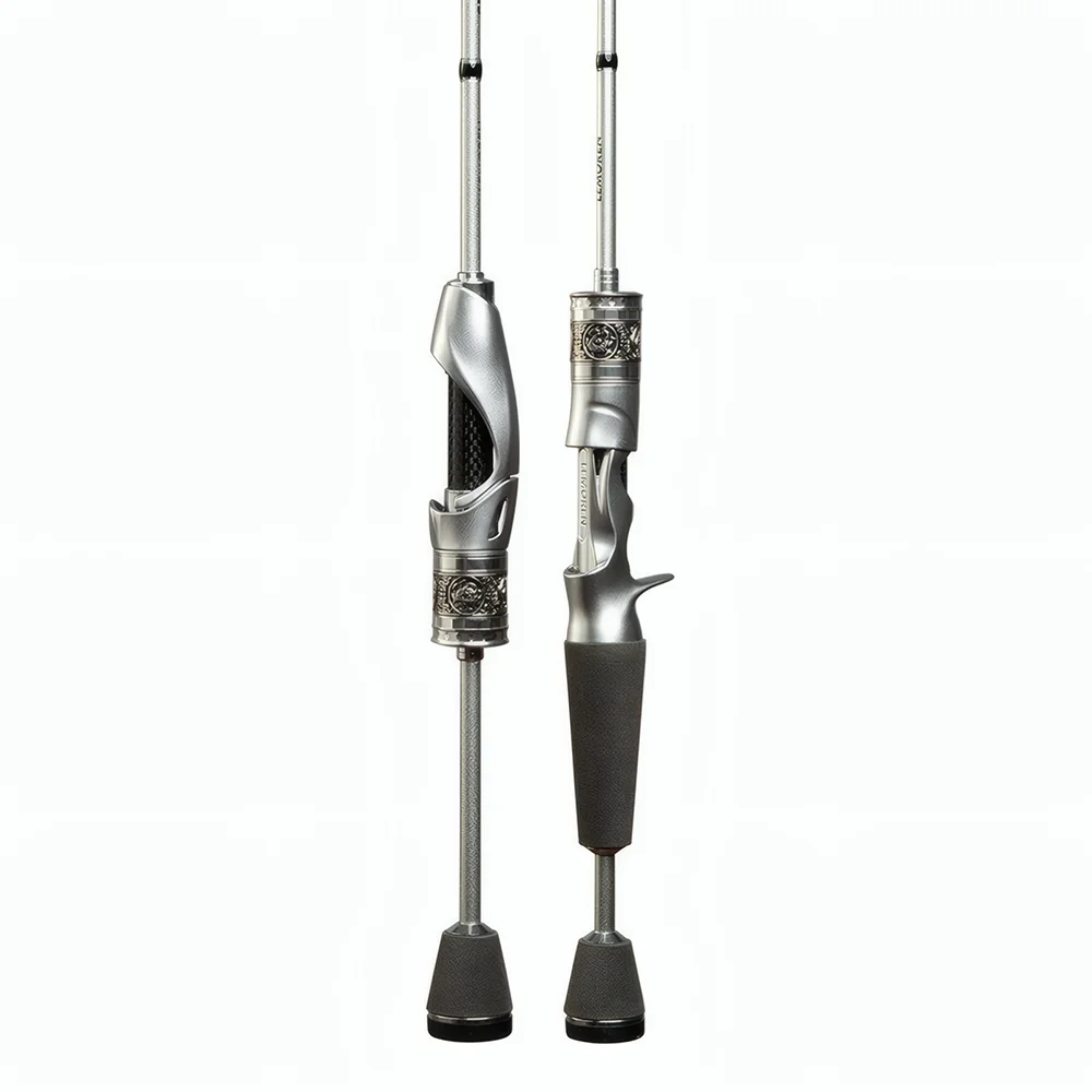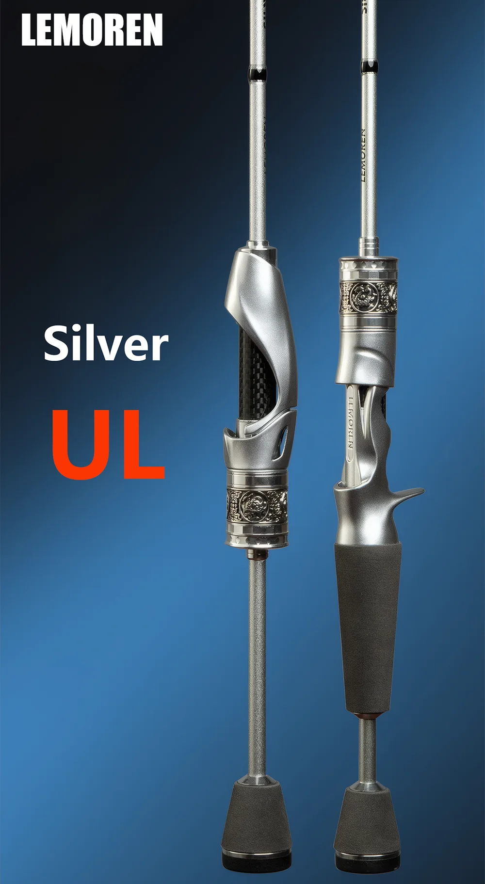Caña de pescar con señuelo de fibra de carbono plateada, caña de pescar y lanzar ultraligera ultraligera de 2 secciones, herramienta para caña de pescar de lubina, 1,5/1,68 m