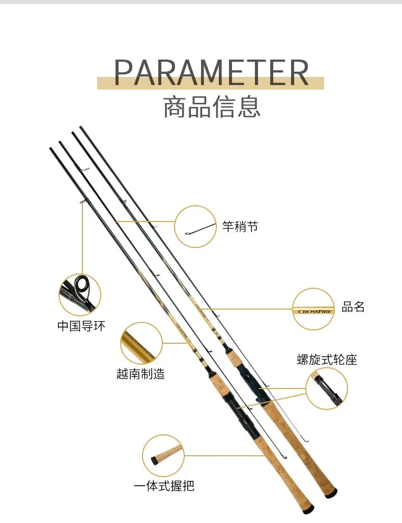 Caña de pescar con señuelo giratorio/Baitcasting DAIWA CROSSFIRE CS, 2 secciones de fibra de carbono