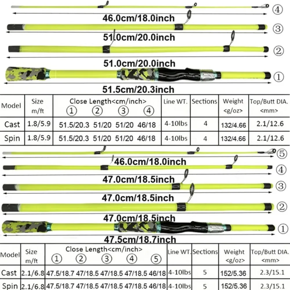 Señuelo de Micro peces de 4/5 secciones, caña de pescar, caña de pescar giratoria de carbono, señuelo de caña de viaje para Baitcasting WT.3,5 g-14 g ML pesca de trucha lucio 1,8/2,1 m