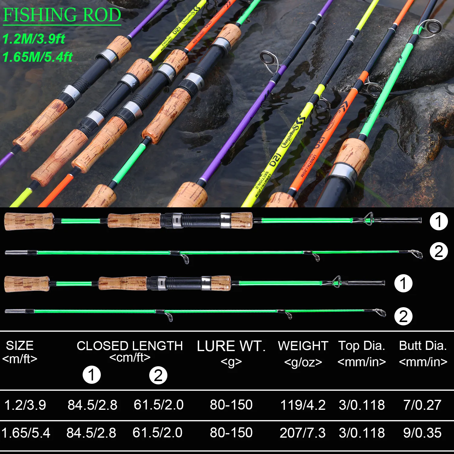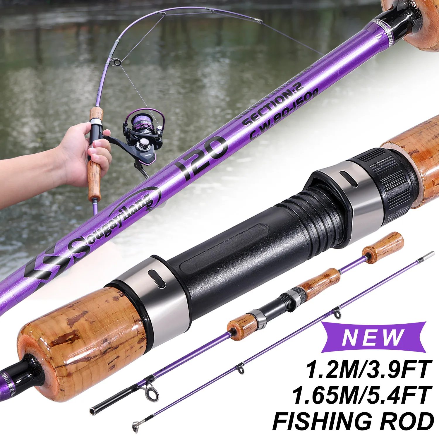 Caña de pescar con señuelo Sougayilang, 1,2 m, 1,65 m, 2 secciones, caña de pescar giratoria, arrastre máximo de 8kg para alimentador de agua dulce, cañas de lubina