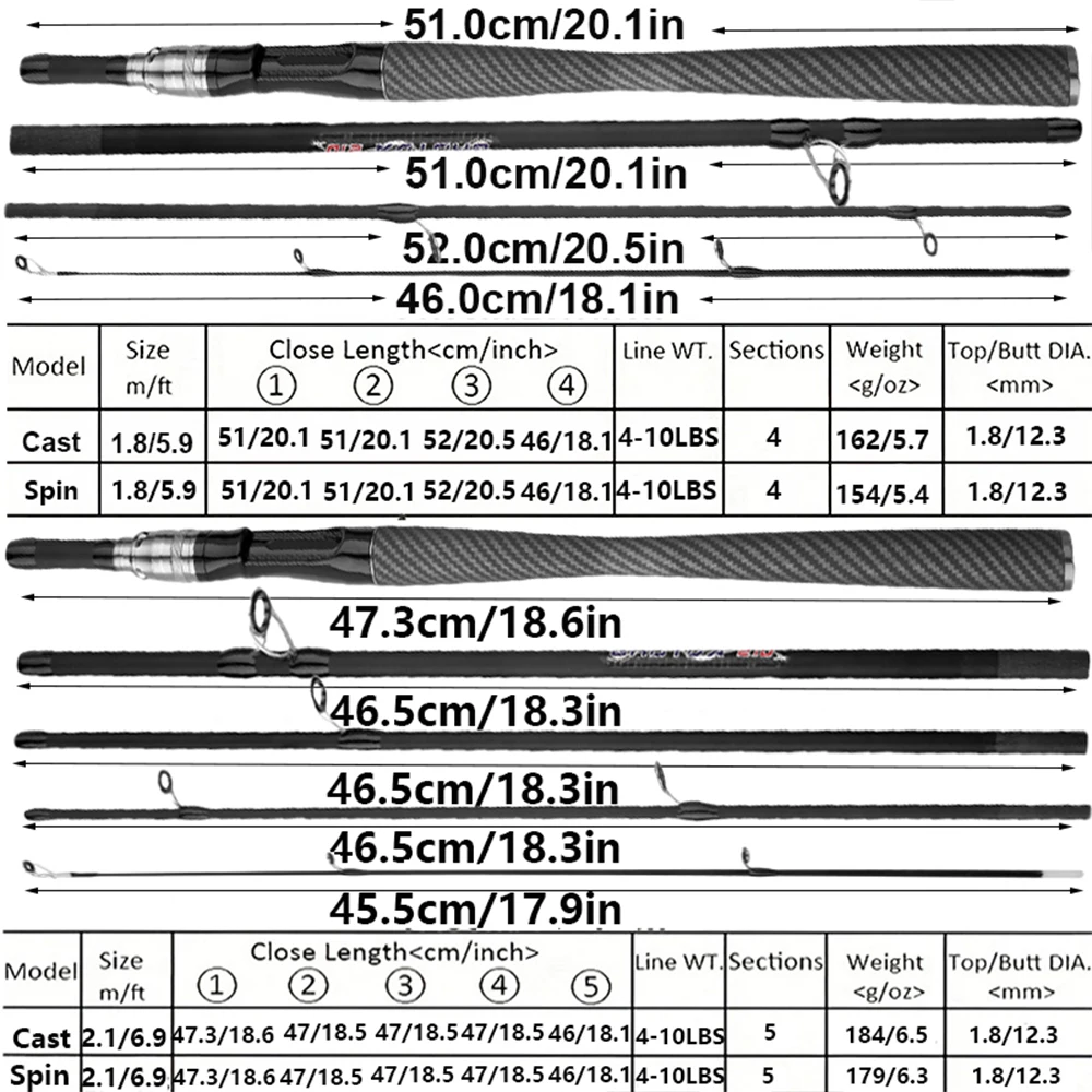 Caña de pescar telescópica y portátil de 1,8/2,1 m con punta sólida, caña giratoria de carbono duro, caña de pescar para lubina, trucha, potencia media