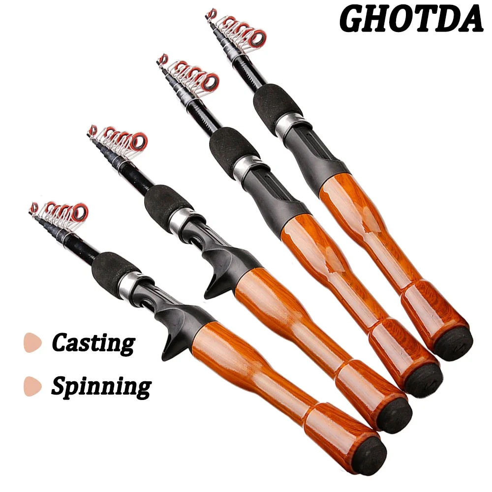 Caña De pescar con señuelo telescópico de 1,3 M, 1,6 M, 1,8 M, peso ultraligero, fundición giratoria, caña De carbono, accesorios De pesca, caña De Pescar