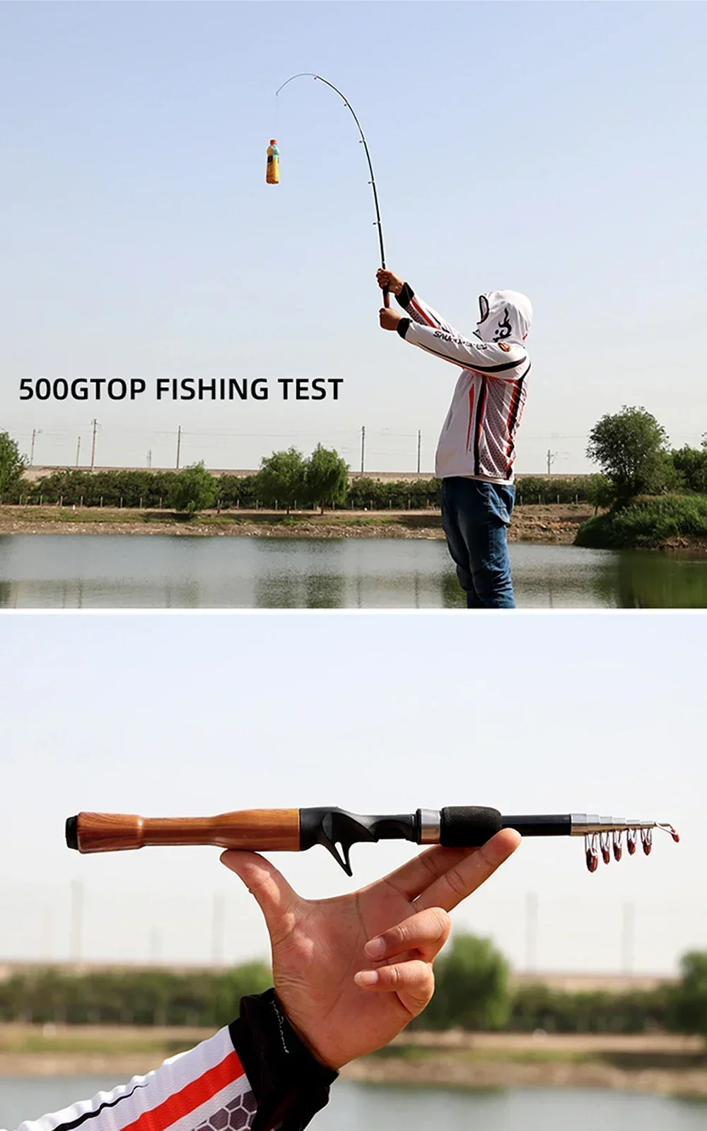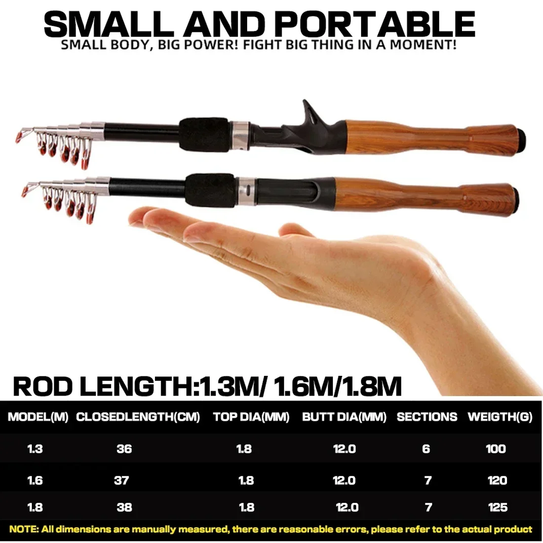 Caña De pescar con señuelo telescópico de 1,3 M, 1,6 M, 1,8 M, peso ultraligero, fundición giratoria, caña De carbono, accesorios De pesca, caña De Pescar