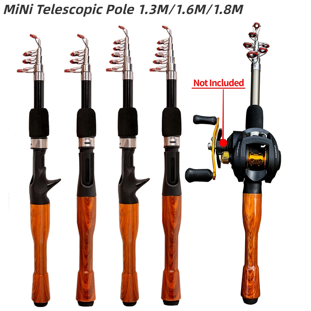 Caña De pescar con señuelo telescópico de 1,3 M, 1,6 M, 1,8 M, peso ultraligero, fundición giratoria, caña De carbono, accesorios De pesca, caña De Pescar