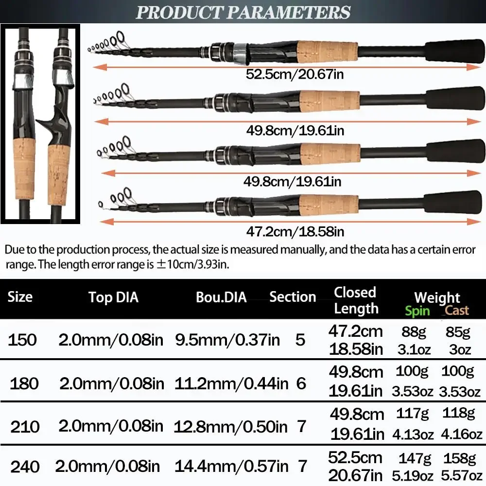Fabricada con tela de carbono cruzada, la punta de la varilla es increíblemente sensible, lo que facilita la detección incluso de las mordeduras más ligeras.La característica telescópica también lo convierte en el compañero perfecto para viajar, ya que se puede condensar fácilmente en un tamaño compacto para su transporte.