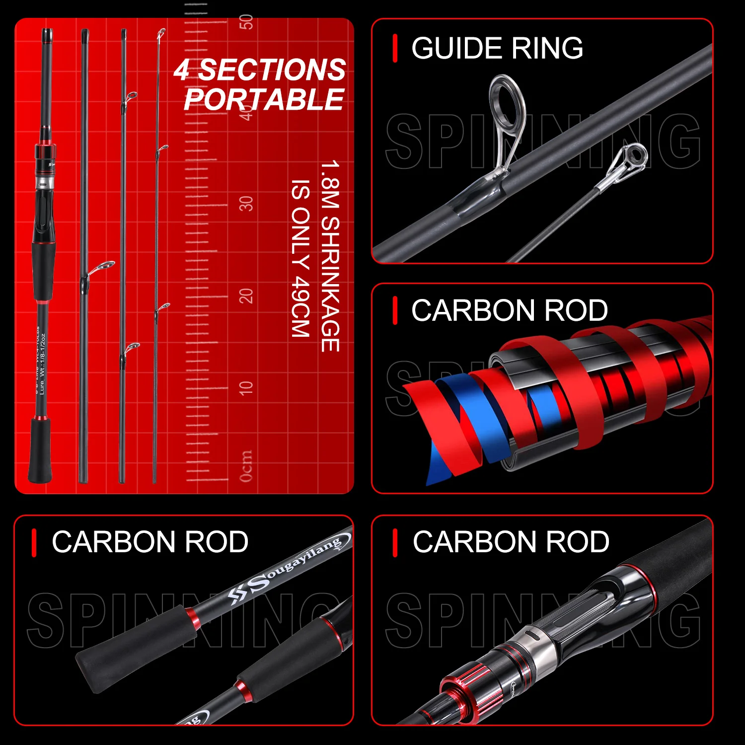 Caña de pescar de primera calidad, ultraligera, muy ligera.
