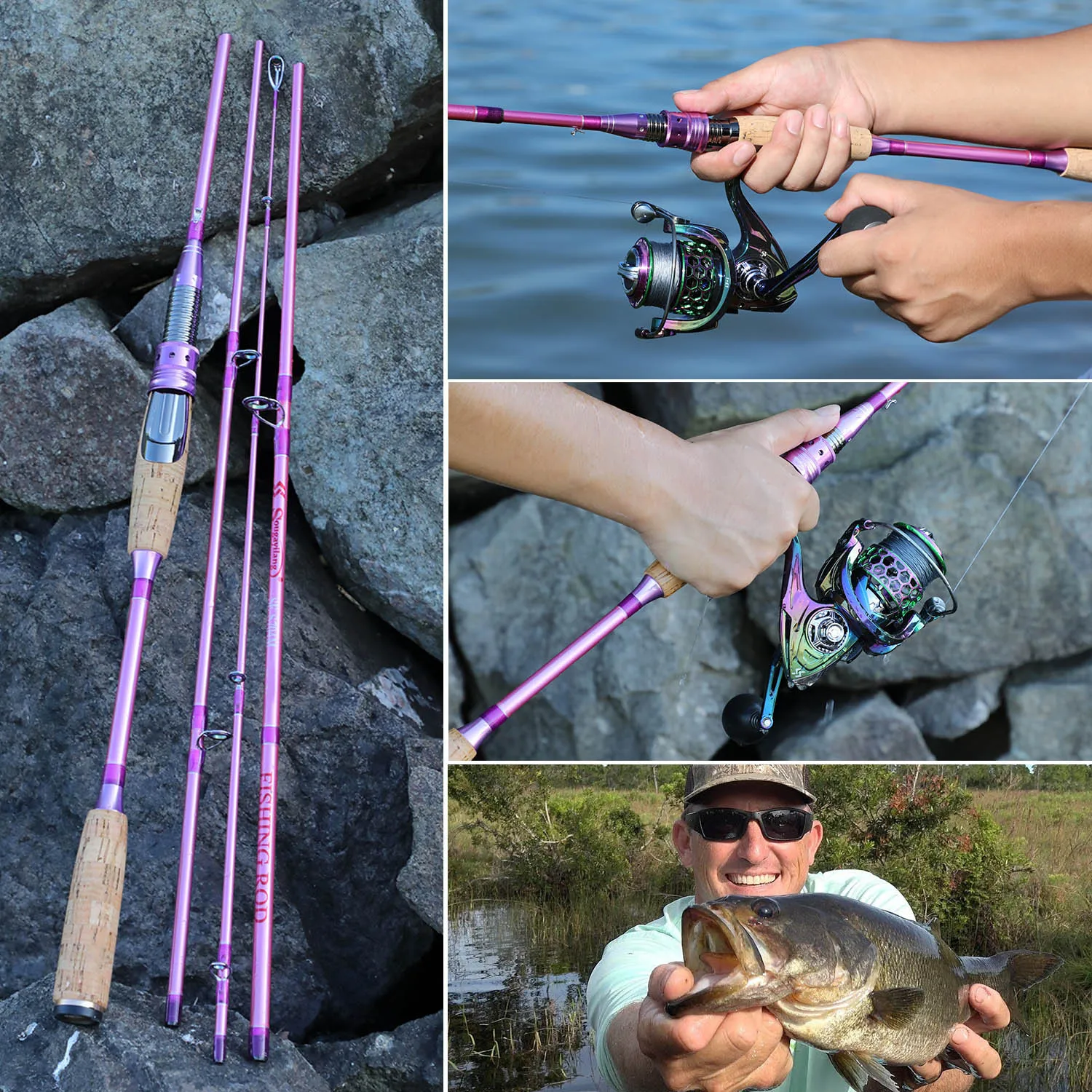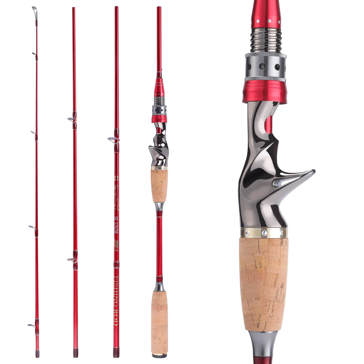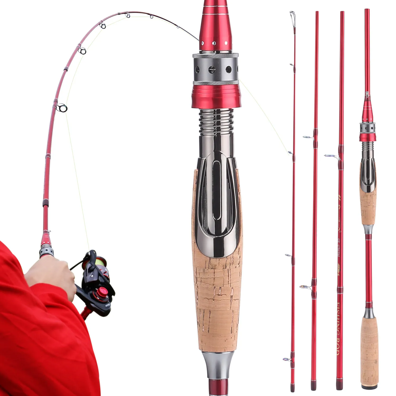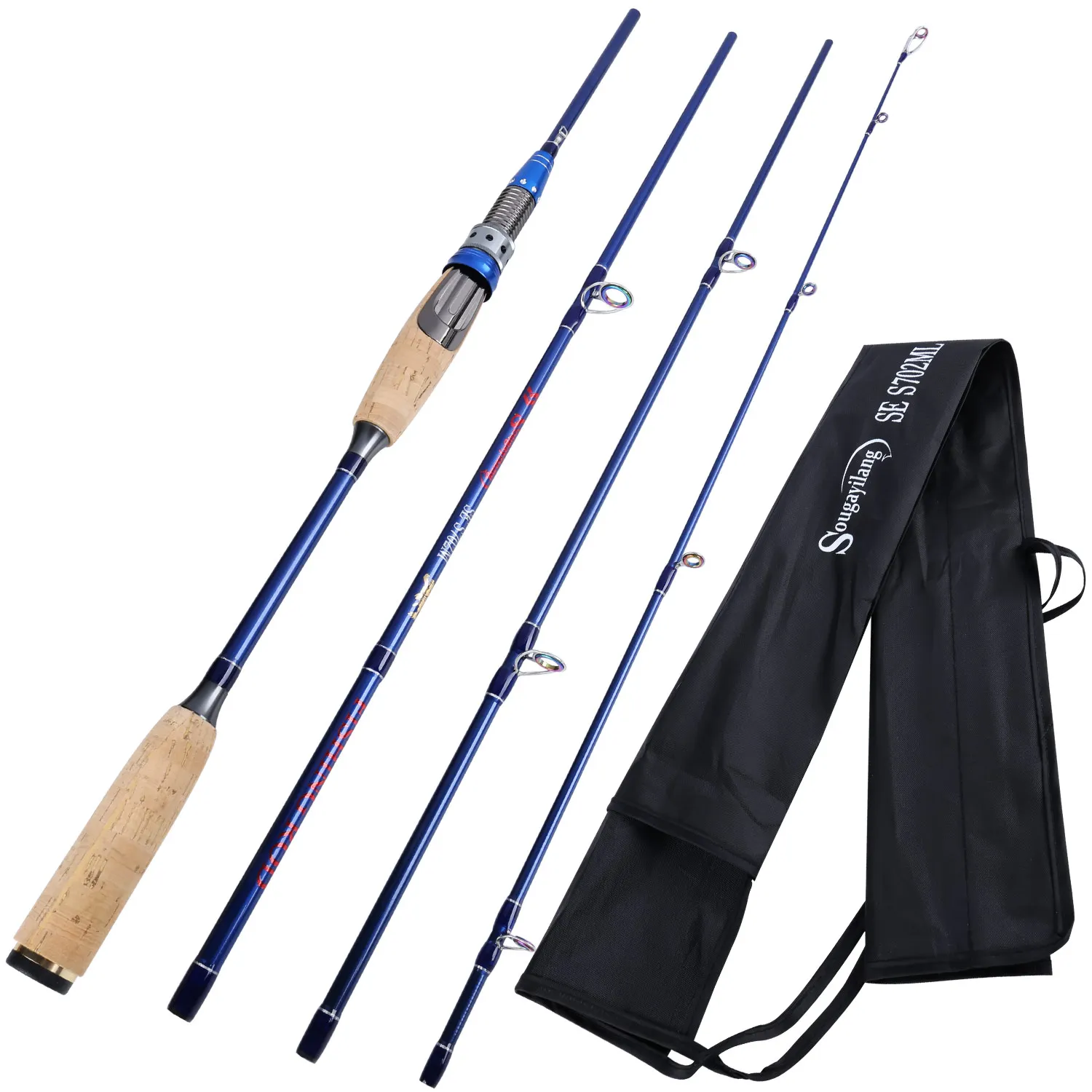 Caña de pescar Sougayilang de 2,1 m, caña de pescar ultraligera de fibra de carbono de 4 secciones para pesca de carpa lubina y bagre