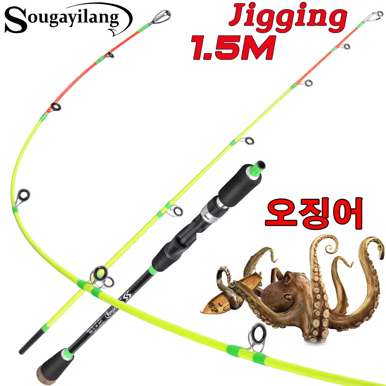 Caña de pescar Sougayilang para fundición/varilla de Jigging giratoria, caña de Jigging de 1,5 m, potente punta de titanio, cola de goma, caña de barco de pulpo