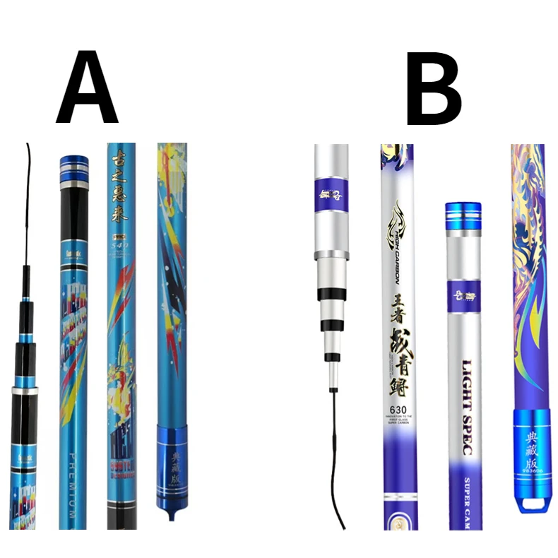 6.Sobre la caña de pescar, como muestra la siguiente imagen, tAquí hay 2 tipos de recubrimiento diferentes, A y B... Son de la misma calidad, solo que el recubrimiento es diferente,Enviaremos la caña de pescar al azar,Por favor, entiéndalo, gracias.