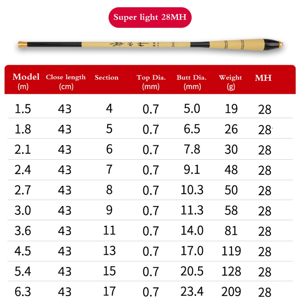 Caña de pescar superdura y ultraligera, caña de fundición telescópica de fibra de carbono, 1,5 m-6,3 m, portátil, para carpa, para hielo en invierno, 28MH