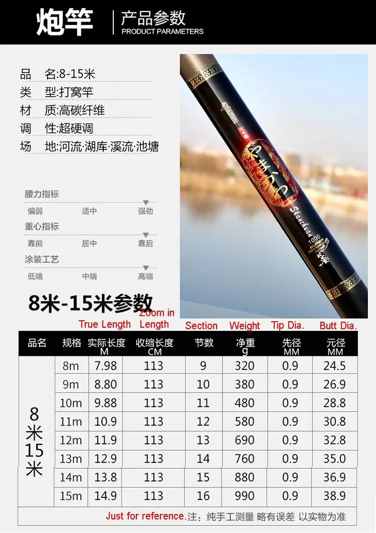 Caña de pescar superlarga ZZ199, acción rápida, superdura, 11m, 13m, 15m