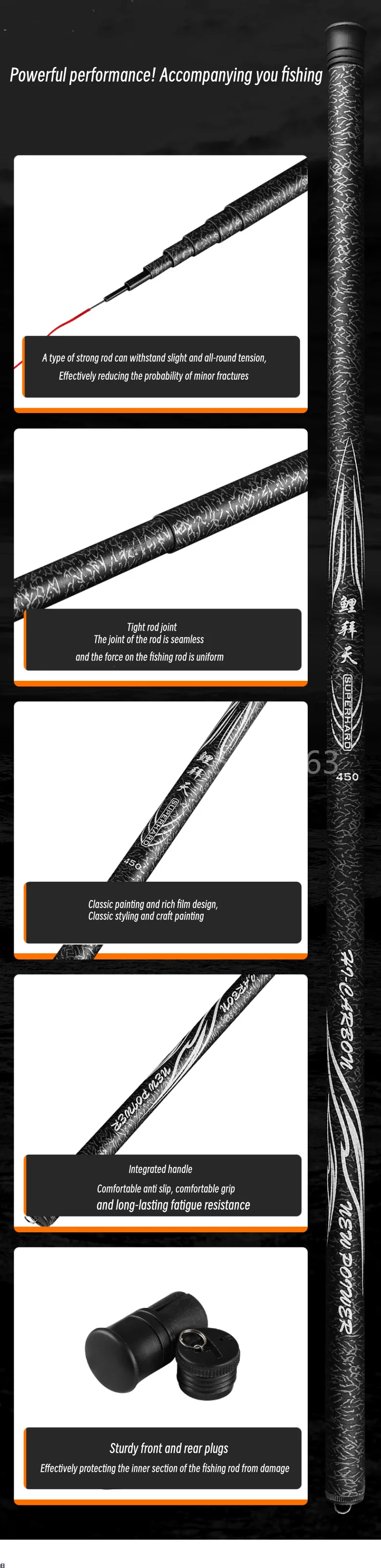 Caña de pescar superligera de carbono de alta calidad, posicionable mango telescópico de fibra, poste de corriente 2,7/3,6/4,5/5,4/6,3/7,2 MTravel Carp