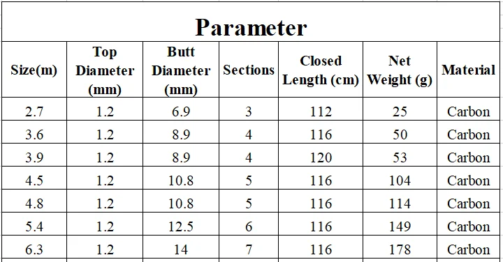 Longitud:2,7-6,3 mLongitud cerrada:112-116cm