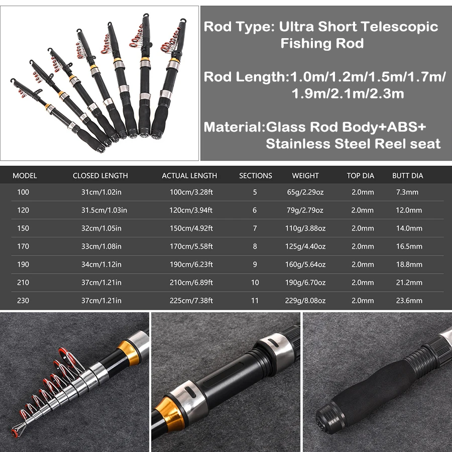 Material: cuerpo de varilla de vidrio + ABS + asiento de carrete de acero inoxidable