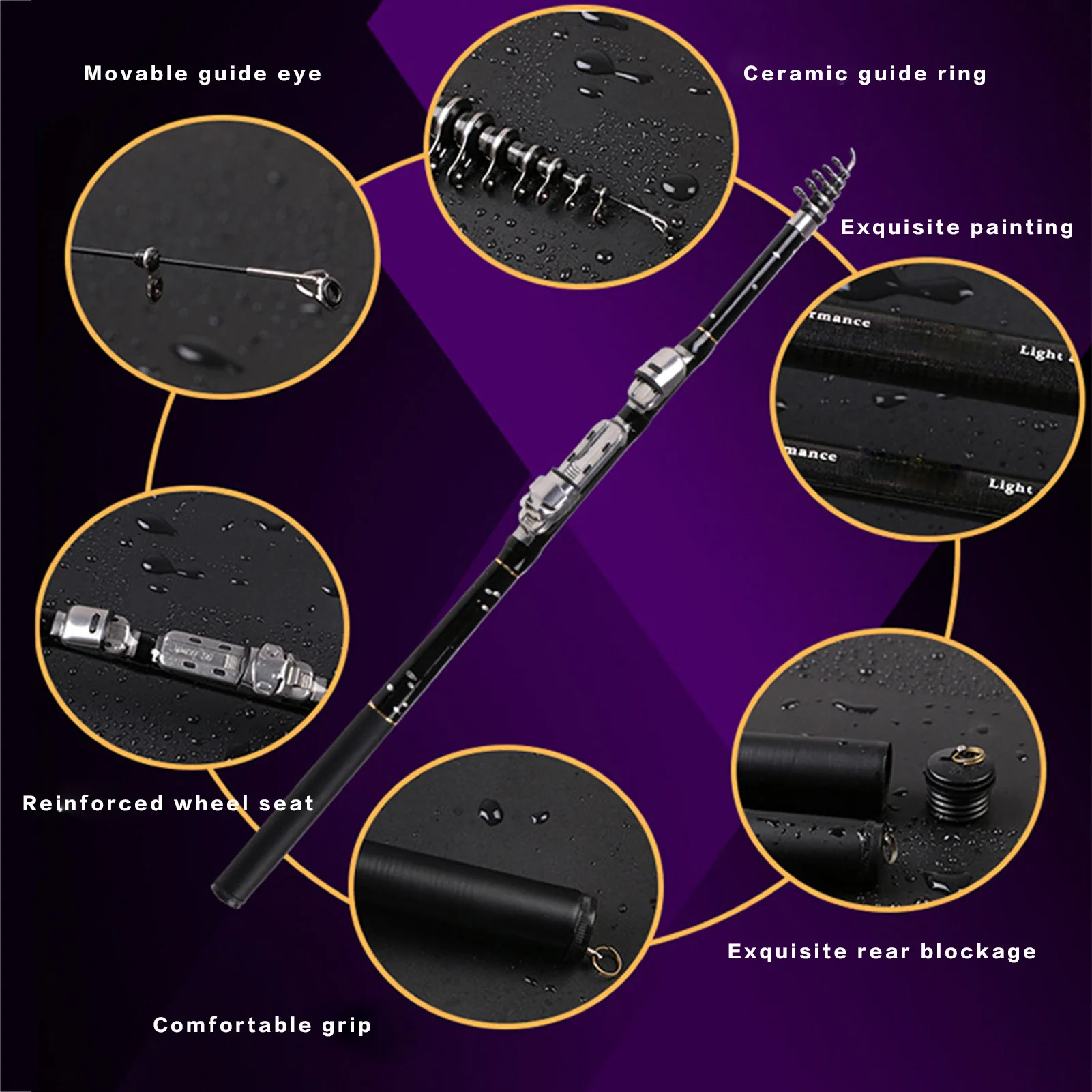 Conveniente y cómodo: la caña para pescar extra liviana y fácil de transportar está especialmente diseñada para brindar facilidad de uso y comodidad. Su mango ergonómico proporciona un agarre firme y cómodo, reduciendo la fatiga durante largas sesiones de pesca. Además, su tamaño compacto lo hace ideal para guardarlo en su automóvil o equipaje cuando se va de vacaciones o de viaje de placer.