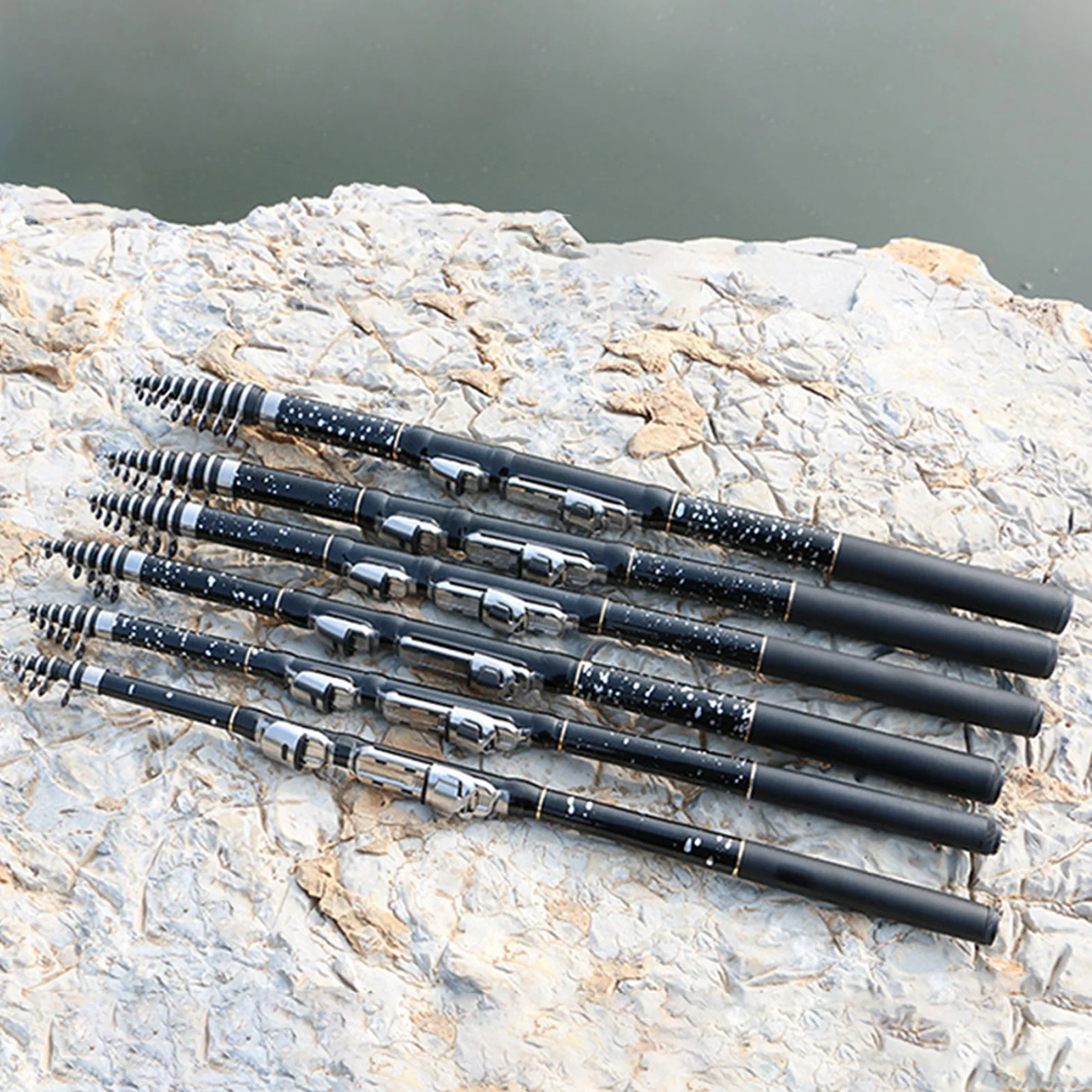 Versátil y duradera: fabricada con fibra de carbono de buena calidad, la caña de pescar telescópica ofrece resistencia y durabilidad excepcionales.Puede manejar diversas técnicas de pesca, desde pesca en agua dulce hasta agua salada, lo que garantiza una experiencia de pesca confiable y versátil.