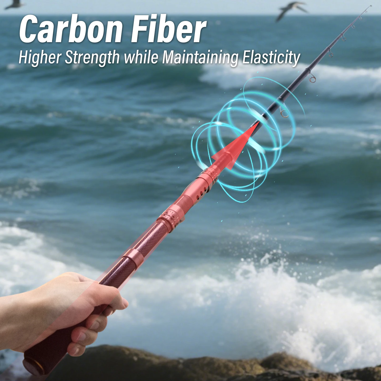 Elasticidad perfecta: la fibra de carbono de alta densidad hace que su caña de pescar sea dura y duradera.Soporte de carrete de aleación de aluminio anticorrosión de agua salada.El marco de acero inoxidable con anillo guía de cerámica ayuda a asegurar lanzamientos más largos y reduce la fricción en la línea.