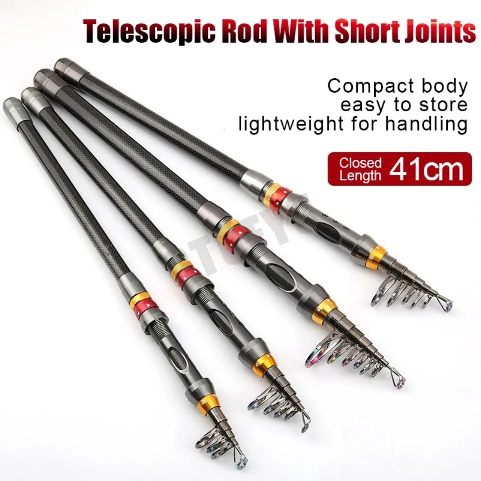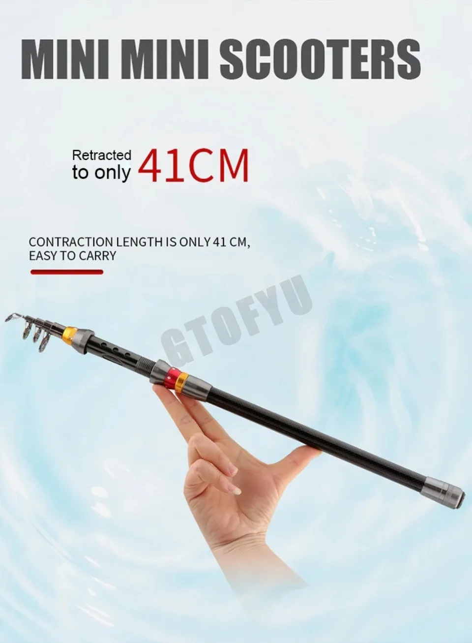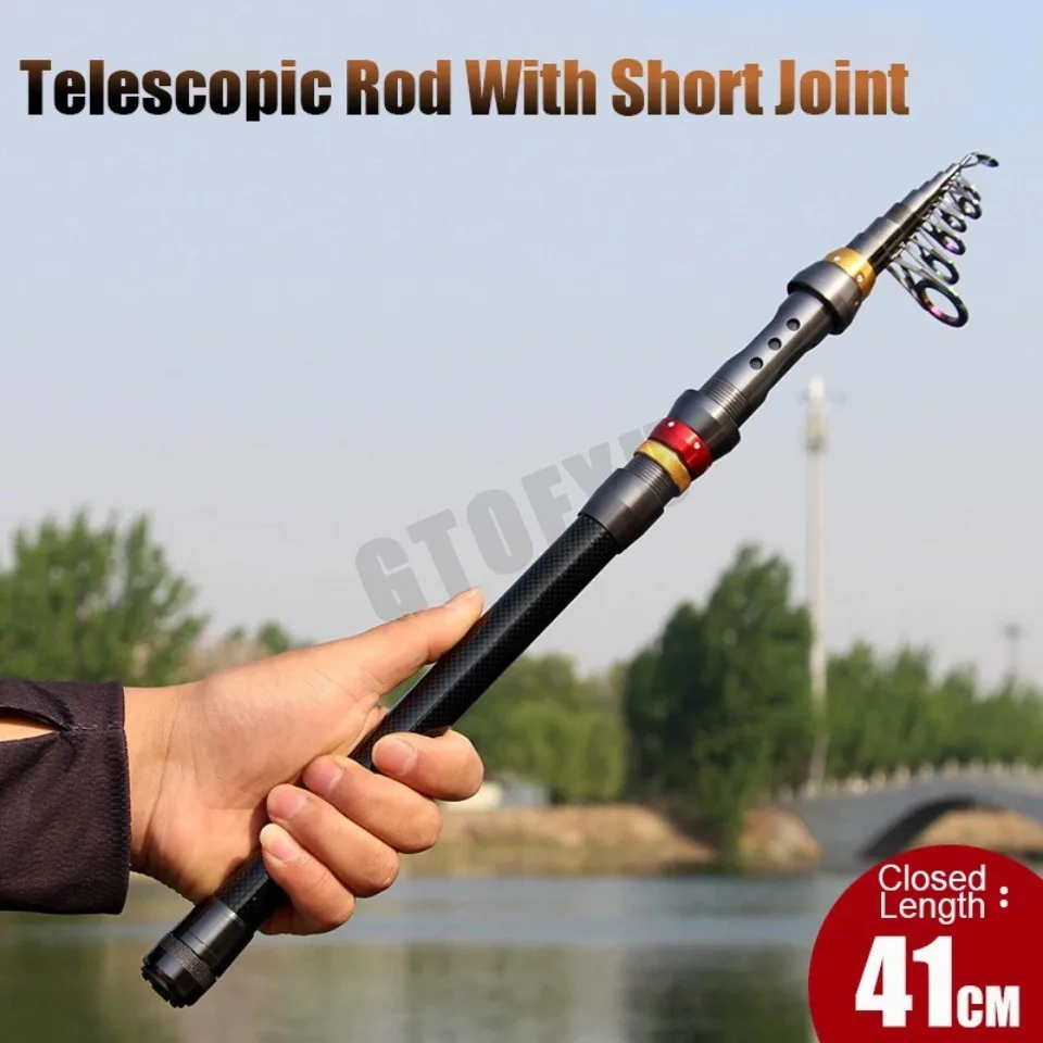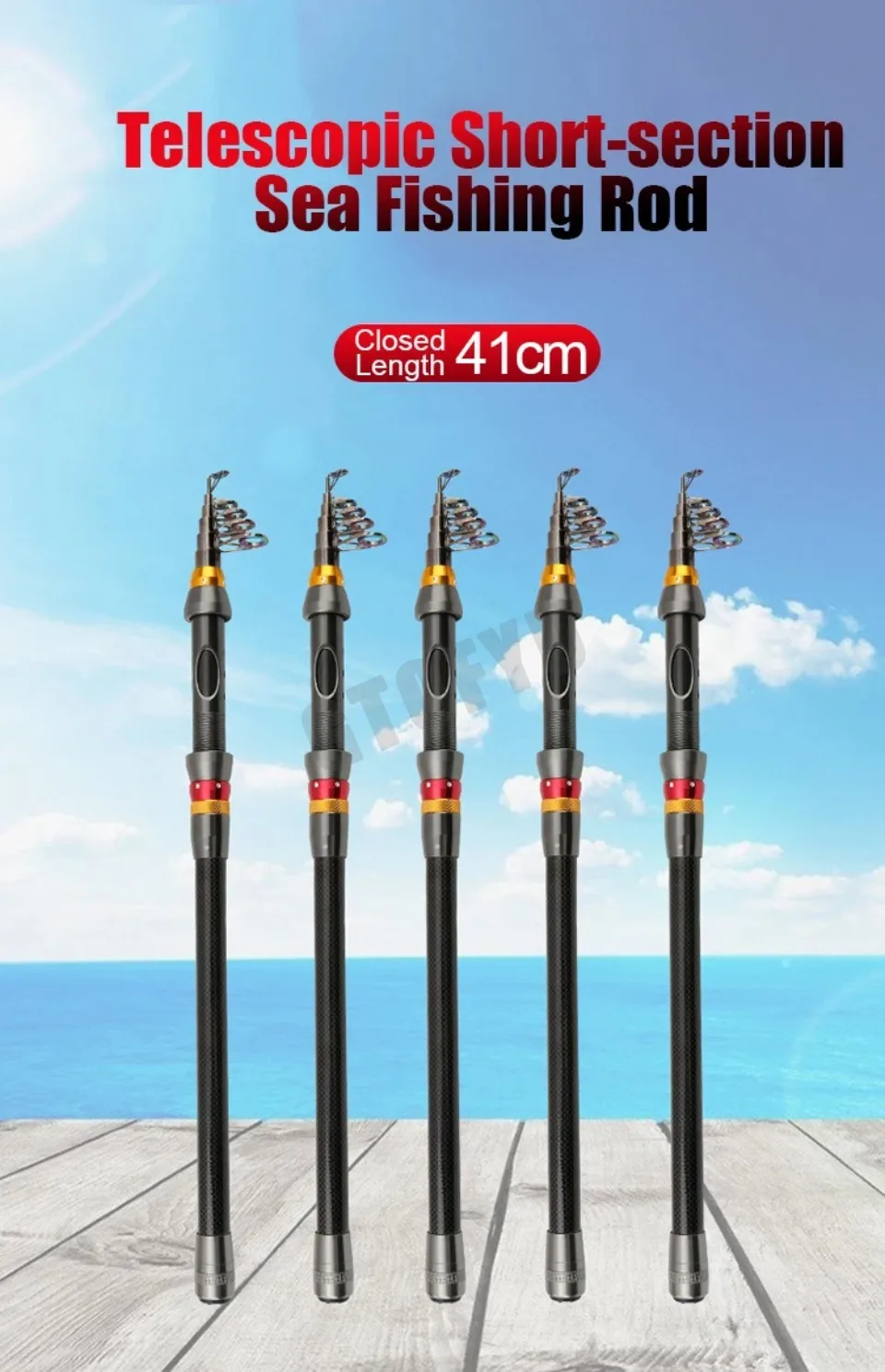 Caña de pescar telescópica, 1,8 M-3,6 M, corta, portátil, de carbono, pequeña caña de mar, pluma de lanzamiento telescópica, caña de pescar giratoria