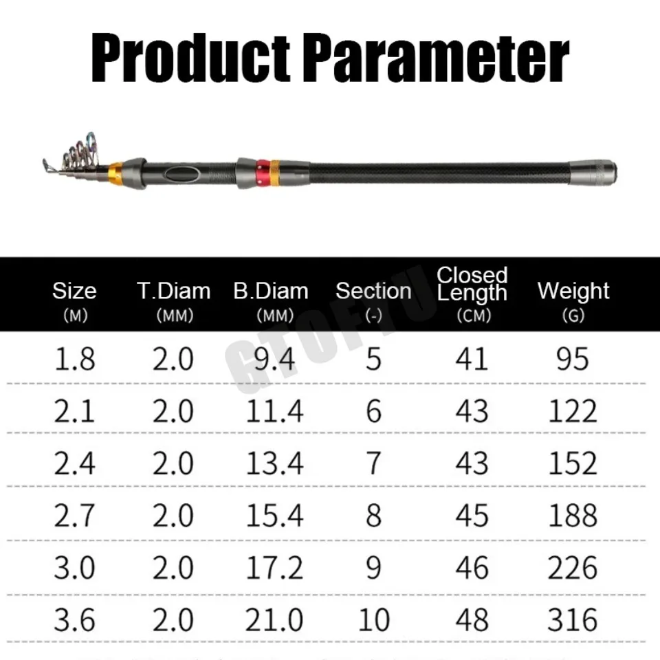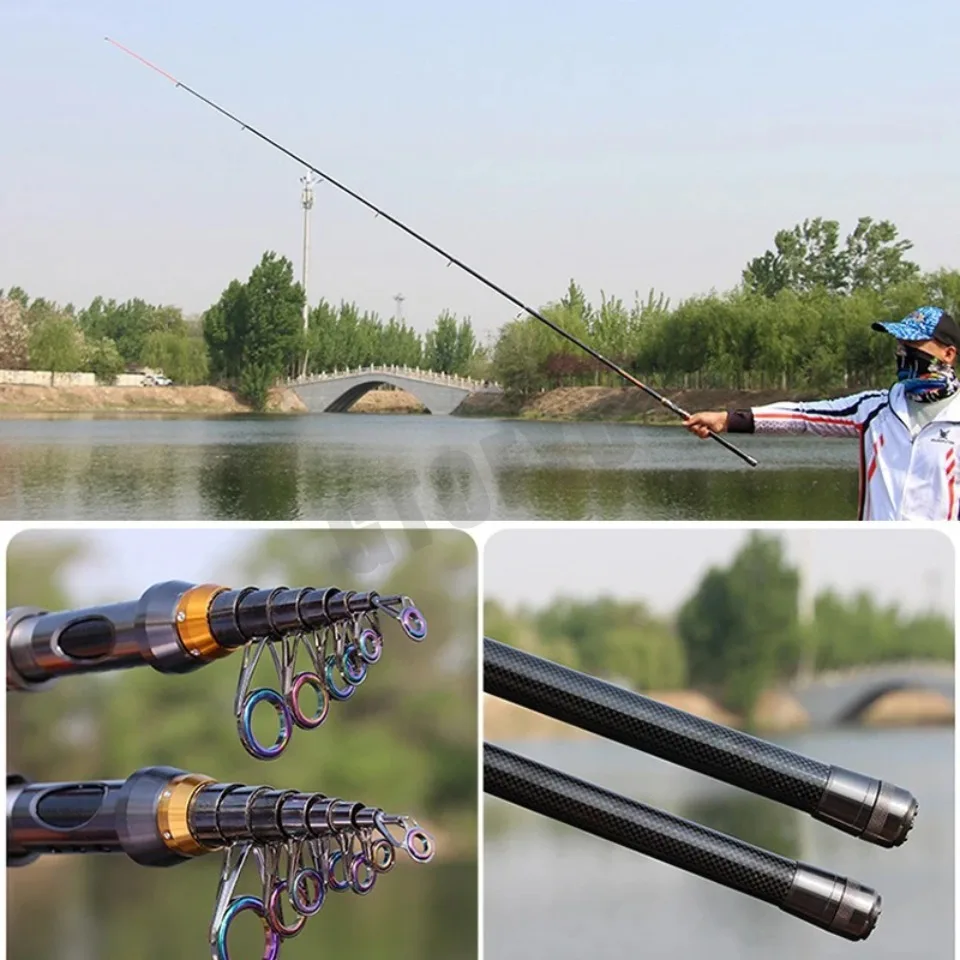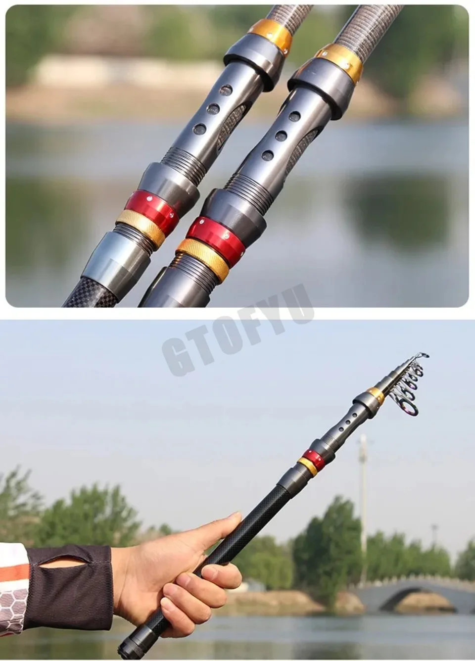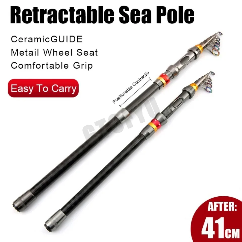 Caña de pescar telescópica, 1,8 M-3,6 M, corta, portátil, de carbono, pequeña caña de mar, pluma de lanzamiento telescópica, caña de pescar giratoria